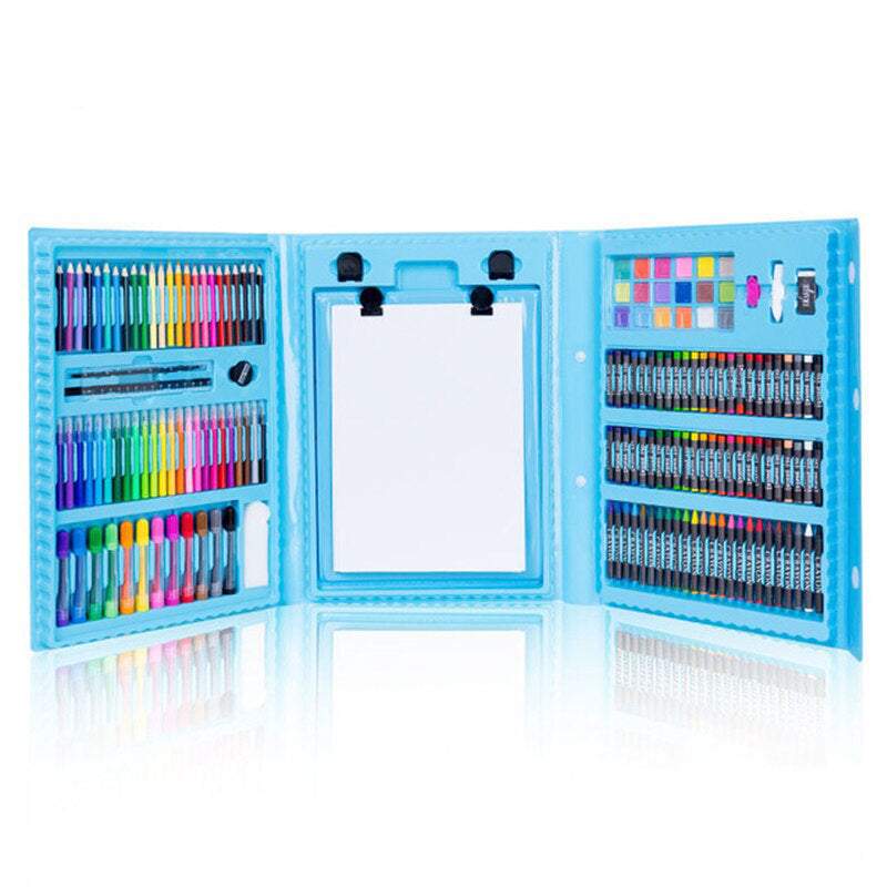 Mākslas komplekts ir piedāvājums ne tikai bērniem. Bagātīga krāsu palete un dažāda veida instrumenti labi noderēs skicējot, krāsojot un daudzos citos darbos. Atmodini sevī mākslinieku un izpaudies caur krāsu!