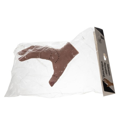 Mākslīgs, ar rokām nogriezts dekoratīvs Helovīna aksesuārs — viltota roka Helovīnam ir labs aksesuārs vai dekorācija. To var izmantot, lai svētku laikā radītu biedējošu un smieklīgu atmosfēru. To bieži izmanto: istabas, viesistabas, biroja dekorēšanā, ballītēs, kā kostīma elementu, biedējošās ekskursijās, kā filmu sīkrīku vai izstādēs. Pieaugušā rokas izmērs — aksesuārs ir pieaugušā rokas lielumā, kas to labi papildinās jūsu Helovīna stilā. Reālistisks izskats + rētas — nogrieztajai rokai ir reālistisks izskats un redzamas rētas ar šuvēm. Ja vēlaties efektīvi nobiedēt savus draugus, šis rokturis ir domāts jums. Dabiski rozā krāsa — roka ir miesas krāsā ar sarkanīgu apdari uz nagiem. Tāpēc tā ir ideāli piemērota, lai izjustu nelielu baiļu sajūtu un izpaustu savu radošumu, izmantojot kostīmu un dekorācijas. Specifikācija — materiāls: 100% PVC; krāsa: miesas rozā; izmēri: 15 x 14 x 13 cm; svars: 132 g; svars iepakojumā: 137 g. Produkta specifikācija Materiāls: 100% PVC Krāsa: miesasrozā Izmēri: 15 x 14 x 13 cm Svars: 132 g Svars iepakojumā: 137 g Nogrieztā roka ir fantastisks Helovīna sīkrīks! Ir pienācis laiks sagatavot savu māju gada biedējošākajai naktij. Vai varbūt vēlaties nobiedēt savus draugus? Dabīgā miesasrozā krāsā un ar nogriezto pusi, kas novietota redzamā vietā, tā izraisīs bailes un pēc tam smaidu ikvienā, kas nāks pēc konfektēm!