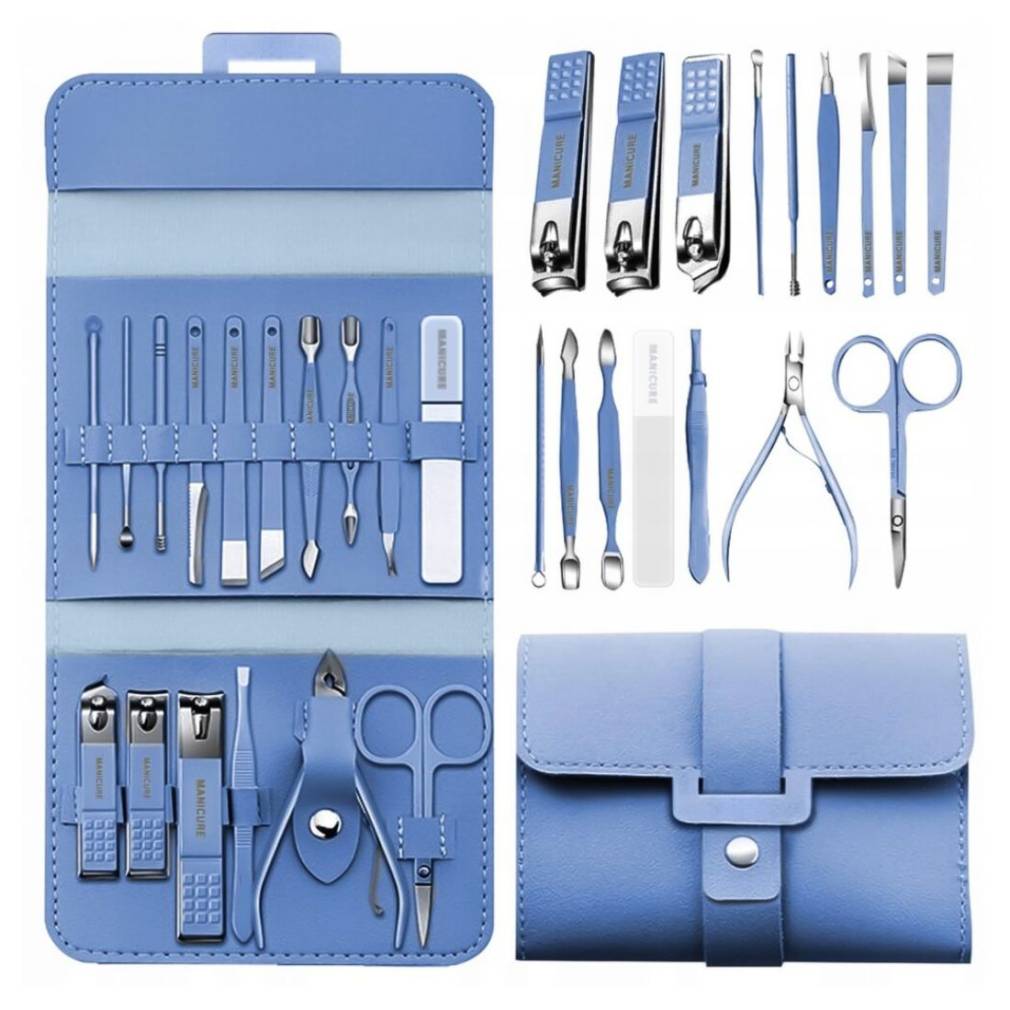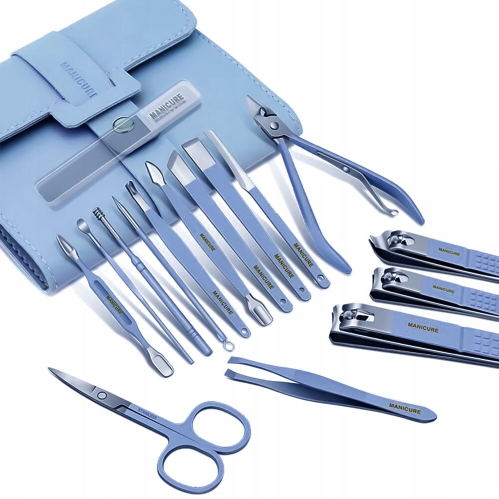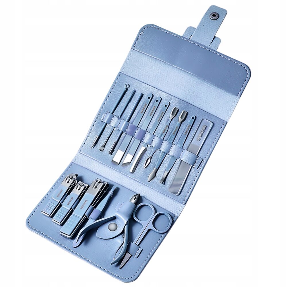 ir 16 instrumenti, kas izgatavoti no augstākās kvalitātes nerūsējošā tērauda. Šajā komplektā atradīsit visu nepieciešamo nagu, roku un sejas kopšanai. Instrumenti ir izturīgi, lai nodrošinātu izcilu nagu kopšanu. Lai gan rīku ir daudz, komplekts ir mazs un parocīgs, lai to varētu ņemt līdzi, lai kur arī dotos. Šis komplekts ir ievietots maciņā, lai nekas netiktu nozaudēts.