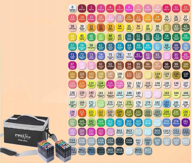 savas radošās puses atraisīšanai. Šajā komplektā ietilpst 204 abpusēji marķieri