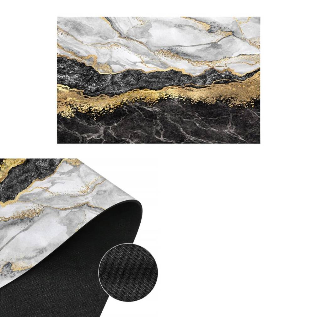 2. Elegants dizains: paklājiņam ir unikāls stils, kas imitē marmoru ar zelta