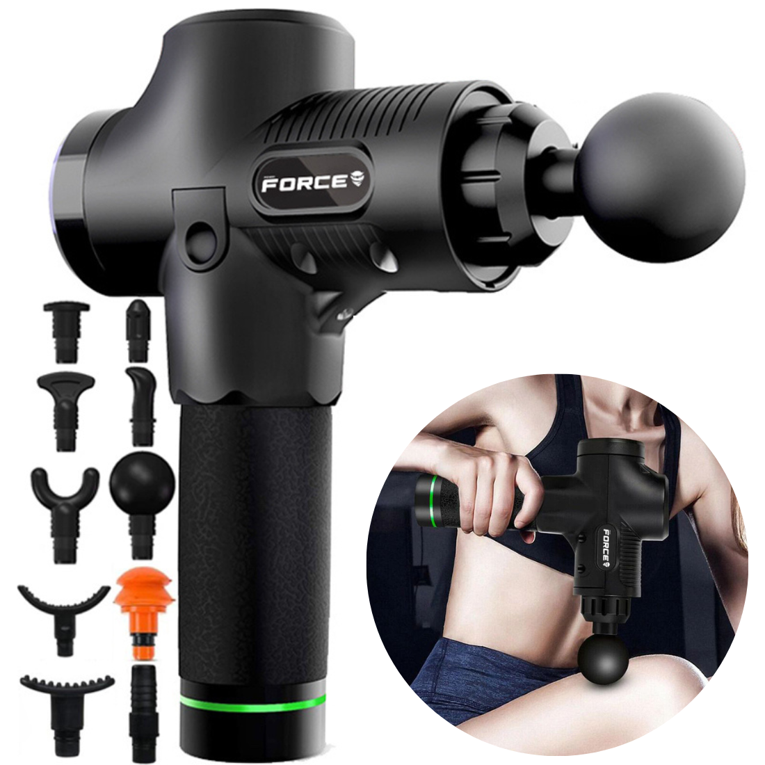 Atjaunojiet ķermeņa spēku ar masāžas pistoli un 10 maiņas uzgaļiem.