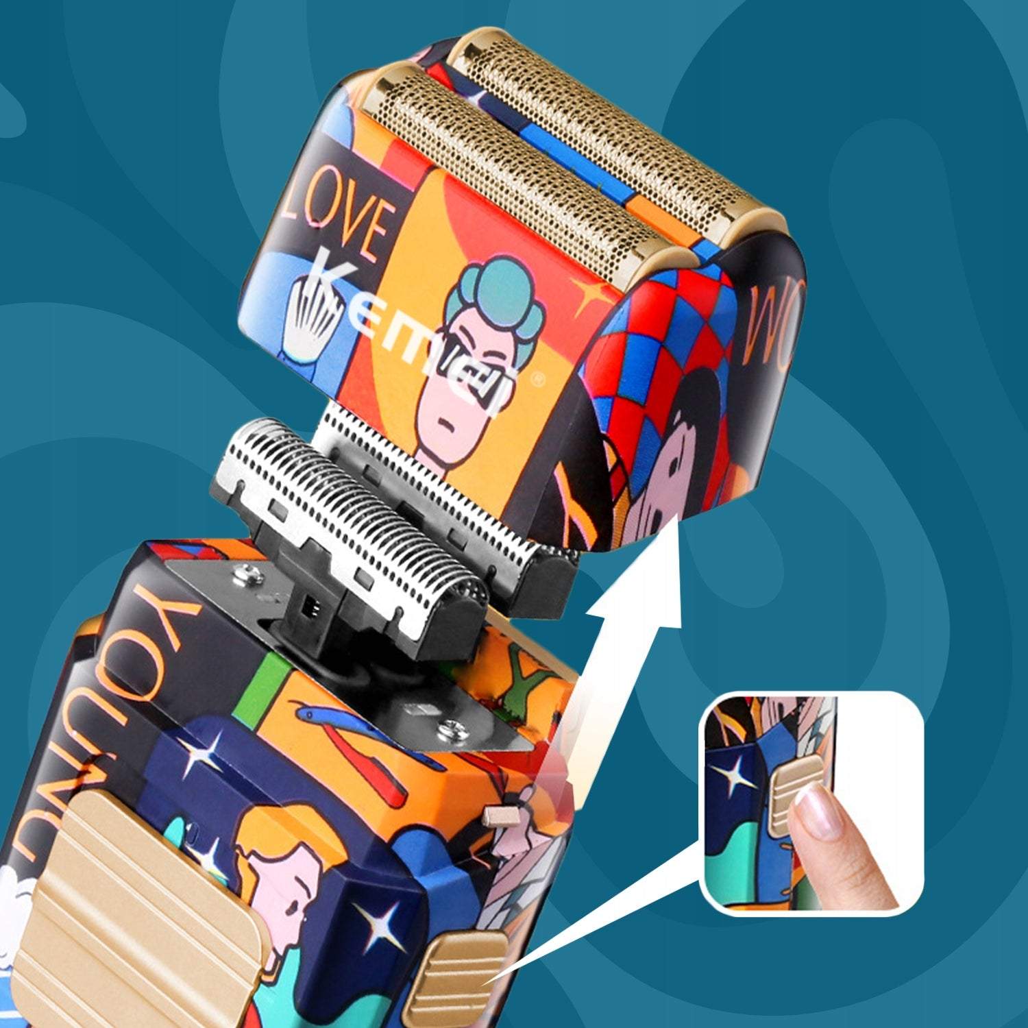 * Iebūvētais trimmeris ļauj ātri noformēt bārdas, ūsas un šķautnes, samazinot
