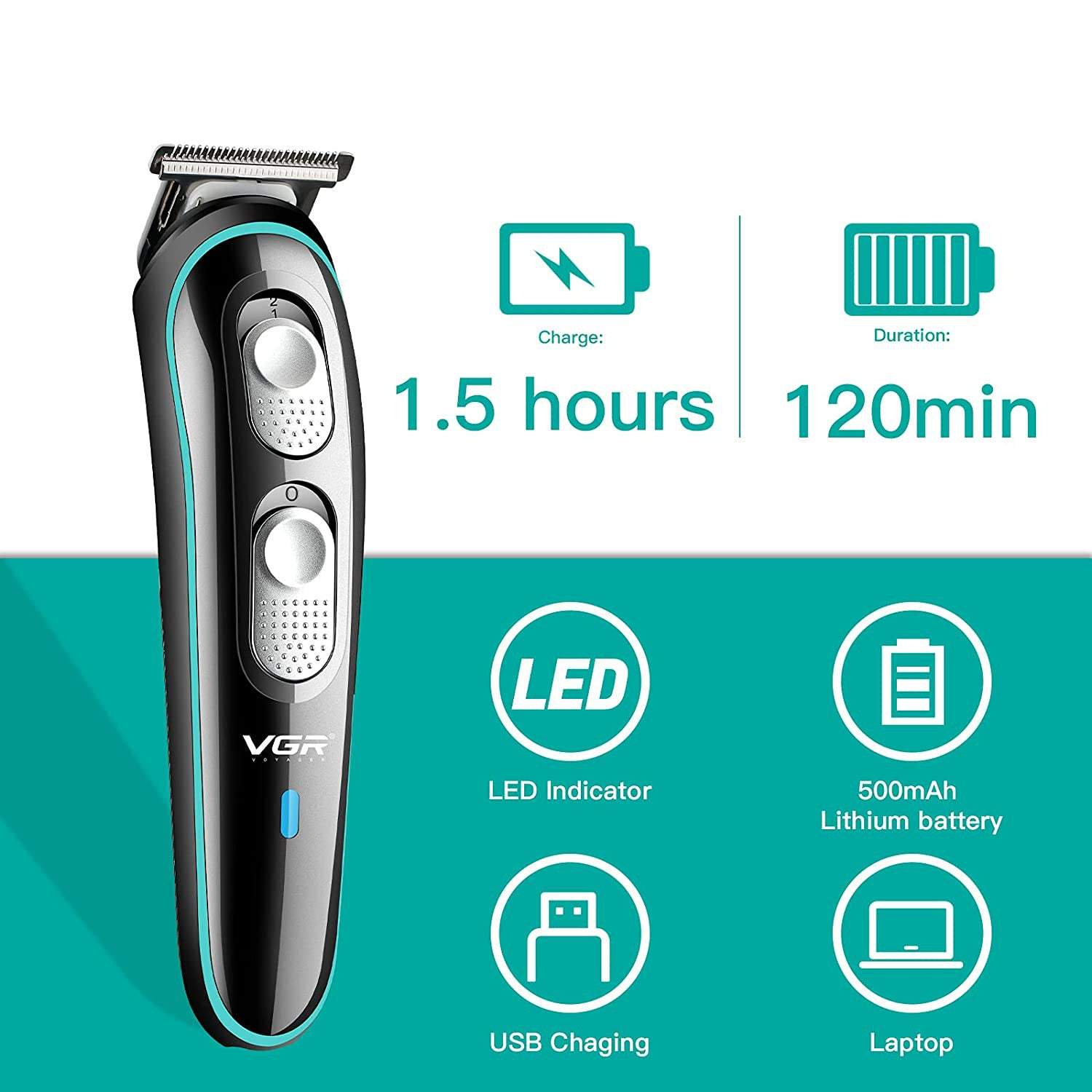 Trimmeris uzlādējas tikai 90 minūtes, pēc tam tas ir pilnībā gatavs lietošanai. No pilnas uzlādes ir iespējams izmantot līdz pat 120 minūtēm.