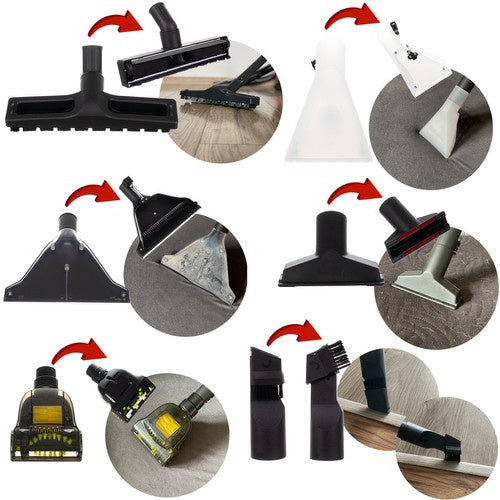 3 vienā mazgāšanas putekļsūcējs ar uzgaļu komplektu Kaminer 20l putekļsūcējs 3 vienā mazgāšana — ierīce, kas papildus tradicionālajai funkcijai – sausai putekļsūcēšanai, netīrumu un putekļu savākšanai – ļauj veikt arī mitru tīrīšanu, izmantojot ūdeni un mazgāšanas līdzekli, un tai ir pūšanas funkcija pēc sūkšanas šļūtenes pārvietošanas uz izplūdes atveri. Pateicoties dubultajai filtrācijai (sūklis un HEPA filtrs), ierīce aizturēs līdz pat 99 % putekļu, ērcīšu un baktēriju! Mazgāšanas funkcija — ļauj ne tikai likvidēt putekļus un netīrumus, bet arī intensīvi notīrīt katru virsmu. Ierīcei ir īpaša tvertne tīrīšanas līdzeklim un ūdenim. Tīrīšana tiek veikta ar izsūkšanu — ar smidzinātāja palīdzību šis maisījums tiek izklāts pa netīro virsmu, un pēc tam sūkšanas funkcija ļauj precīzi iesūkt savāktos netīrumus kopā ar ūdeni, tādējādi izžāvējot mazgāto virsmu. Pateicoties izsūkšanas uzgalim, mazgātās virsmas žūšanas laiks tiek saīsināts. Praktiska pūšanas funkcija — paplašina putekļsūcēja pielietojuma jomu. Vietās, kur sūkšana nav iespējama, putekļsūcējs var darboties pūšanas režīmā. Vienkārši ievietojiet sūkšanas šļūteni izplūdes atverē putekļsūcēja aizmugurē. Kā darbojas putekļsūcējs? - Tam ir divu tvertņu sistēma. Ūdens un mazgāšanas līdzeklis jāielej vienā tvertnē, bet otra automātiski piepildīsies ar izmantoto un netīro ūdeni. Mazgāšanas līdzekļa tvertnes ietilpība ir 3,5 l, savukārt netīrā ūdens tvertnes ietilpība pēc mazgāšanas ir 20 l. Komplektā ietilpst 6 uzgaļi! Turbo grīdas tīrīšanas uzgalis ir paredzēts gludu virsmu un paklāju tīrīšanai, tas var noņemt spītīgus netīrumus, piemēram, dzīvnieku spalvas, pateicoties rotējošam veltnim ar sintētiskiem savākšanas elementiem. Šaurs uzgalis ar kustīgu uzgali ir ideāli piemērots, piemēram, dīvānu stūru, grīdlīstu, griestu un citu stūrīšu un spraugu tīrīšanai. Mazs T-veida uzgalis ir ideāli piemērots paklāju, grīdsegu un mīksto mēbeļu putekļsūcējam. Ūdens izsmidzināšanas tīrīšanas uzgalis, smidzināšanas uzgalis un grīdas birste. Specifikācija - netīrā ūdens tvertnes ietilpība: 20 l; putekļu maisiņa ietilpība: 5,5 l; tīra ūdens un mazgāšanas līdzekļa tvertne: 3,5 l; filtrs: HEPA + sūklis; darba veids: slapjš, sauss, pūtējs; Funkcijas: paklāju un mīksto mēbeļu mazgāšana; aksesuāru turētāji: jā; spriegums: 230 V; jauda: 1600 W; spiediens uz virsmu: 20 kPa; trokšņa līmenis: 58 dB(A); gaisa plūsma: 28 ls; sūknis: 25 W; putekļsūcēja izmēri: 46 x 36 x 32 cm; caurules garums: 230 + 86 cm; svars: 7,8 kg; svars iepakojumā: 8,4 kg. Komplekta specifikācija: netīrā ūdens tvertnes tilpums: 20 l putekļu maisiņa tilpums: 5,5 l tīra ūdens un mazgāšanas līdzekļa tvertne: 3,5 l filtrs: hepa + sūklis darba veids: slapjš, sauss, pūtēja funkcijas: paklāju un mīksto mēbeļu mazgāšana piederumu turētāji: jā spriegums: 230 V jauda: 1600 W spiediens uz virsmu: 20 kpa trokšņa līmenis: 58 db(a) gaisa plūsma: 28 l sūknis: 25 W putekļsūcēja izmēri: 46 x 36 x 32 cm caurules garums: 230 + 86 cm svars: 7,8 kg svars iepakojumā: 8,4 kg iekļauts: putekļsūcējs 20 l elastīga šļūtene 2 x savienojošās caurules hepa filtrs sūklis filtra auduma maisiņš 5,5 l mazgāšanas līdzekļa tvertne 3,5 l tīrīšanas uzgalis ar ūdens smidzinātāja uzgali dīvāna uzgalis grīdas birste 2in1 uzgalis turbo uzgalis komplekta priekšrocības: daudzpusīgs efektīvs praktisks funkcionāls rūpējas par higiēnu un veselību mitras spalvas sausā putekļsūcēja izpūšana liela tvertne 20 l darba diapazons 8,16 m divi hepa un Sūkļa filtri Daudzfunkcionāli uzgaļi aizstāj vairākas ierīces Efektīvs moderns dzinējs Nodrošina lielu jaudu ar zemu trokšņa līmeni (85 dB) Stabila konstrukcija, kas izgatavota no izturīgiem materiāliem, izturīga pret mehāniskiem bojājumiem un rūsu Lietošanas ērtums Mobils uz riteņiem Garš strāvas kabelis Ergonomisks rokturis ērtai pārnēsāšanai Piederumu uzglabāšana Augsta sūkšanas jauda Dziļās tīrīšanas aizbāznis netīra ūdens novadīšanai Kaminer zīmola brīdinājums Saturs: 1. Pirms lietošanas pārbaudiet, vai vietējais barošanas avots atbilst etiķetē norādītajam. 2. Ja no pūtēja noplūst šķidrums, remonta laikā neapgāziet ierīci, jo ūdens iekļūs dzinējā un sabojās to. 3. Neizmantojiet šo ierīci kā sūkni. 4. Pēc katras lietošanas vai remonta atcerieties izslēgt ierīci un atvienot to no elektrotīkla. 5. Sargājiet ierīci no tiešiem saules stariem un vietām ar augstu temperatūru, jo tas var izraisīt plastmasas deformāciju. 6. Nevelciet un neraujiet šļūteni, jo tas var to sabojāt. 7. Neiegremdējiet ierīci ūdenī un nemazgājiet to ar ūdeni, jo ūdens var iekļūt elektroforēzes detaļās un sabojāt ierīci vai izraisīt traumas. 8. Ja elektriskās detaļas ir jānomaina, ierīci remontējiet speciālistiem. 9. Nelietojiet šo ierīci viegli uzliesmojošu priekšmetu tuvumā, jo motora dzirkstele var izraisīt ugunsgrēku. 10. Neaizbloķējiet gaisa ieplūdi, jo tas var izraisīt temperatūras paaugstināšanos un motora bojājumus. 11. Nesūciet viegli uzliesmojošus vai sprādzienbīstamus priekšmetus, piemēram, degošas cigaretes, benzīnu utt. 12. Nesūciet asus priekšmetus, piemēram, adatas un skrūves, jo tas var sabojāt iekšējās detaļas un filtrus. 13. Nesūciet priekšmetus, kas var viegli pielipt pie filtra, piemēram, kaļķa pulveri, ģipsi un grafīta pulveri. Tie bloķēs motoru, izraisot ventilācijas bojājumus. 15. Lūdzu, saglabājiet šo rokasgrāmatu un skatiet to pēc nepieciešamības. 16. Neieelpojiet viegli uzliesmojošus, toksiskus šķidrumus, piemēram, benzīnu, eļļu, skābes vai citas gaistošas vielas, lai izvairītos no kaitējuma