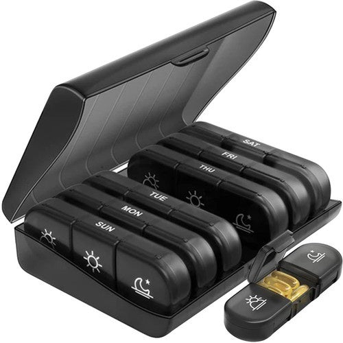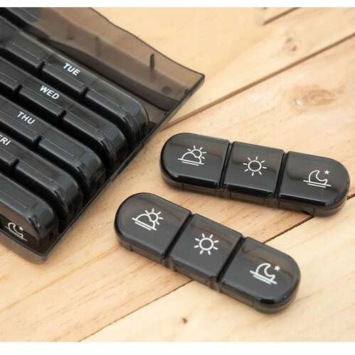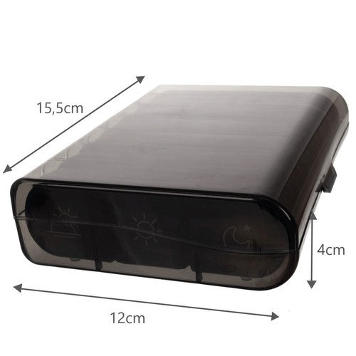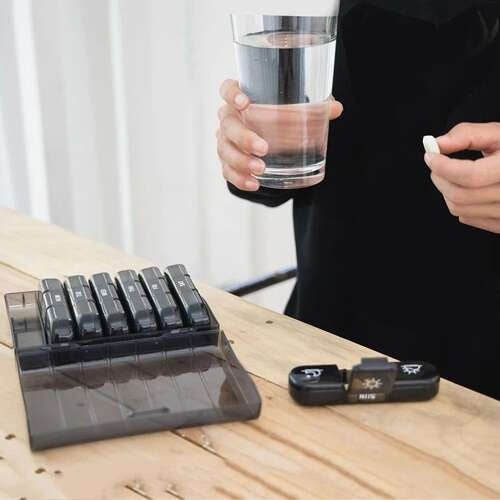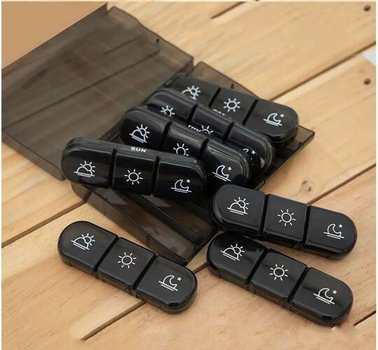 Nedēļas medikamentu organizators 3 dienu komfortam un drošībai regulāriem lietotājiem — šis medikamentu organizators ir ideāls risinājums cilvēkiem, kuriem regulāri jālieto medikamenti. Ar skaidru sadalījumu nedēļas dienās un diennakts laikos tas nodrošina pilnīgu kontroli pār medikamentu lietošanas grafiku. Sistemātiska organizatora lietošana palīdz izvairīties no kļūdām un aizmāršības, kas ir ļoti svarīgi terapijas efektivitātei. Kompakts un diskrēts, organizators viegli iederas somiņā, mugursomā vai čemodānā, padarot to par ideālu ceļabiedru gan ikdienas lietošanai, gan ceļojumos. Praktisks sadalījums nedēļas dienās — organizatora iekšpusē ir septiņi atsevišķi konteineri, katrs no tiem marķēts ar baltiem burtiem, kas skaidri norāda nedēļas dienas. Pateicoties tam, jūs varat viegli organizēt medikamentus visai nedēļai, kas palīdz izvairīties no kļūdām un nodrošina, ka neaizmirstat devu. Katru konteineru var izņemt atsevišķi, tādējādi atvieglojot medikamentu ņemšanu līdzi, piemēram, uz darbu vai ceļojumā. Skaidra sadalījuma sistēma pa diennakts laikiem — katrs no septiņiem konteineriem organizatorā ir sadalīts trīs atsevišķās kamerās, marķētas ar simboliem, kas norāda diennakts laiku: rīts, pusdienlaiks un vakars. Katra kamera aizveras atsevišķi ar klikšķi, kas nodrošina drošu medikamentu uzglabāšanu un pasargā tos no mitruma un piesārņojuma. Skaidras atzīmes palīdz ātri un precīzi sagatavot atbilstošas medikamentu devas katram diennakts laikam. Lietošana — zāļu organizators ir ideāli piemērots lietošanai mājās, kur to var novietot viegli pieejamā vietā, atgādinot par zāļu lietošanu. Pateicoties kompaktajam izmēram, organizators ir ideāls risinājums ceļojumiem, gan atvaļinājumam, gan komandējumiem. Tas ļauj droši transportēt medikamentus un nodrošina, ka nepalaidīsiet garām nevienu devu. Varat to ņemt līdzi uz biroju, lai pārliecinātos, ka pat intensīvas darba dienas laikā neaizmirsīsiet lietot medikamentus vai uztura bagātinātājus. Cilvēkiem, kas uzturas slimnīcā vai rehabilitācijas centrā, organizators palīdz sekot līdzi medikamentiem un uztura bagātinātājiem, kas var būt īpaši svarīgi atveseļošanās laikā. Specifikācija — krāsa: melna; materiāls: PP; nedēļas: jā; 3 reizes dienā: jā; kopējie izmēri: 15,5 x 12 x 4 cm; svars: 0,2 kg; svars iepakojumā: 0,253 kg. Iepakojuma specifikācija: krāsa: melna materiāls: pp nedēļas laikā: jā 3 reizes dienā: jā kopējie izmēri: 15,5 x 12 x 4 cm svars: 0,2 kg svars iepakojumā: 0,253 kg komplektā iekļauts: futrālis 7 trīskāršās kasetes brīdinājums saturs: - aizpildiet organizatoru nedēļas sākumā, lai izvairītos no pārpratumiem dienas laikā. pievērsiet uzmanību dažādajiem nodalījumiem nedēļas dienām un sadalījumam rīta, pēcpusdienas un vakara devās. - uzglabājiet tablešu organizatoru sausā vietā, prom no mitruma, lai novērstu tablešu bojājumus un to degradāciju. neglabājiet organizatoru vannas istabā vai virtuvē, kur var būt augsts mitrums. - glabājiet organizatoru bērniem nepieejamā vietā, jo pat neliels daudzums dažu medikamentu var tiem kaitēt. bīstami. - pirms organizatora uzpildīšanas pārliecinieties, ka visas zāles joprojām ir derīgas. Beigušos zāļu lietošana var būt neefektīva vai bīstama. - pirms katras lietošanas reizes pārliecinieties, vai organizatora nodalījumi ir pareizi aizvērti, lai izvairītos no nejaušas zāļu izliešanas - uzglabājiet organizatoru sausā vietā, prom no tiešiem saules stariem un mitruma, jo tas var ietekmēt tajā uzglabāto medikamentu kvalitāti. -dažus medikamentus nedrīkst sadalīt, ja vien to neiesaka ražotājs. Pirms zāļu sadalīšanas mazākās devās organizatorā konsultējieties ar ārstu vai farmaceitu, lai pārliecinātos, ka to darīt ir droši.