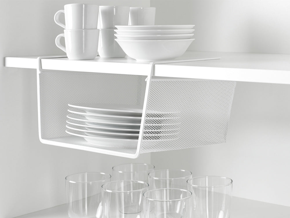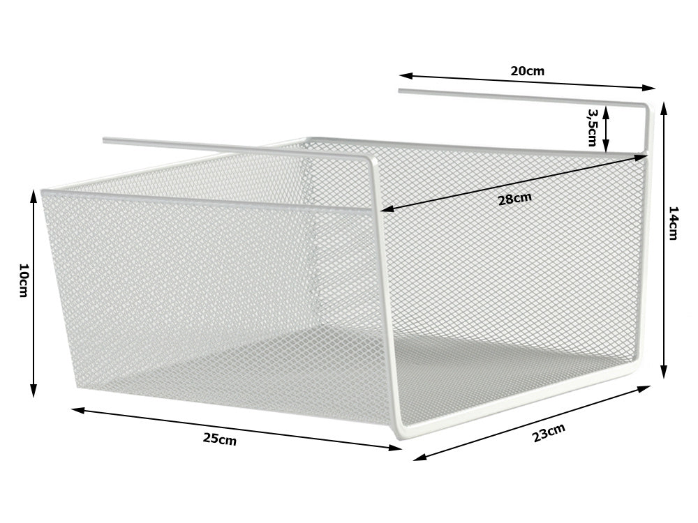 Piekarināms metāla virtuves plaukts, piekarināms plauktu organizators, balts piekarināms grozu organizators - maksimāla vietas izmantošana! Vai jūsu plaukti ir pārpildīti un jūs meklējat gudru veidu, kā pievienot papildu uzglabāšanas vietu? Piekarināms organizators ir ideāls risinājums virtuvei, vannas istabai, birojam vai drēbju skapim! Tas palielinās jūsu skapīšu izmantojamo platību bez montāžas, urbšanas vai sarežģītas uzstādīšanas. Galvenās produkta īpašības: - vienkārša uzstādīšana - vienkārši pabīdiet grozu uz plaukta, un tas ir gatavs! Nav urbšanas, nav nepieciešami instrumenti. - universāls pielietojums - labi darbojas virtuvē, vannas istabā, viesistabā, ģērbtuvē, birojā vai garāžā. - izturīga konstrukcija - izgatavots no izturīga metāla ar aizsargpārklājumu, kas pasargā no rūsas. - vietas maksimizēšana - palielina uzglabāšanas vietu skapjos un plauktos. - moderns dizains - minimālistisks dizains iederas jebkurā interjerā. - žāvēšanas konstrukcija - ažūra konstrukcija nodrošina labu gaisa cirkulāciju. ideāli piemērots: ✔️ šķīvju, krūzīšu un galda piederumu glabāšanai virtuvē ✔️ garšvielu, tējas, kafijas un pārtikas preču glabāšanai ✔️ dvieļu un kosmētikas glabāšanai vannas istabā ✔️ dokumentu, grāmatu un biroja piederumu glabāšanai ✔️ apģērba un aksesuāru glabāšanai skapī ✔️ instrumentu un nieciņu glabāšanai garāžā tehniskās specifikācijas: - konstrukcijas materiāls: krāsots metāls - montāža: bez urbšanas - vienkārši ievietojiet plauktā - izturīgs dizains - drošas, noapaļotas malas - krāsa: balta izmēri: - platums augšpusē: - platums apakšā: - dziļums: - groza augstums: - augstums ar rokturiem: komplektā ietilpst: - plaukts/grozs