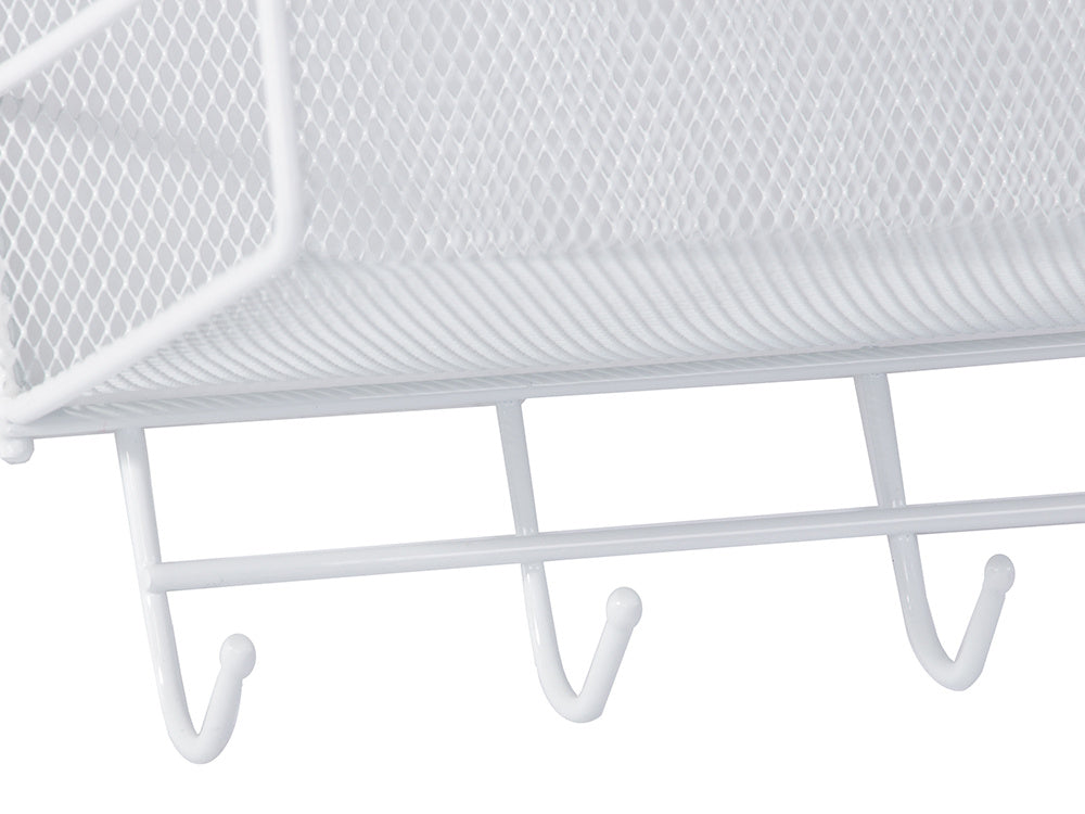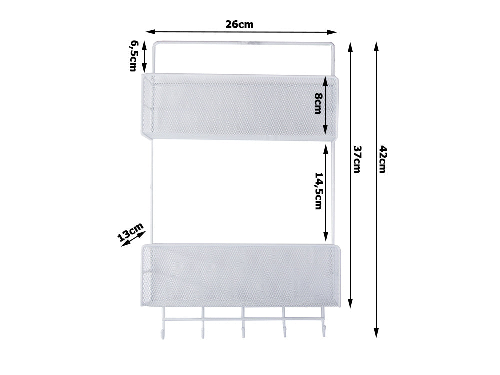 Metāla organizators, piekarināms plaukts, virtuves vannas istabas pakaramais, balts daudzfunkcionāls sienas organizators - ideāli piemērots vannas istabai, virtuvei un ne tikai! Vai sapņojat par kārtību savā vannas istabā, virtuvē vai gaitenī? Metāla sienas organizators ir stilīgs un funkcionāls veids, kā uzglabāt mazus priekšmetus, kosmētiku, virtuves vai vannas istabas piederumus. Pateicoties tā izturīgajai konstrukcijai un pārdomātajam dizainam, jūs iegūsiet papildu vietu, un viss nepieciešamais vienmēr būs pa rokai! Mūsdienīgs dizains un funkcionalitāte - divi praktiski plaukti - ideāli piemēroti kosmētikas, garšvielu, tīrīšanas līdzekļu vai mazu aksesuāru glabāšanai. - āķi apakšā - ļauj pakārt dvieļus, lupatiņas, virtuves piederumus, atslēgas vai vannas istabas piederumus. - vienkārša montāža - nav nepieciešama urbšana! Organizators ir uzstādīts uz izturīgiem, pašlīmējošiem kronšteiniem, kas nodrošina stabilitāti. - metāla siets - nodrošina labu gaisa cirkulāciju, lai novērstu mitruma un pelējuma veidošanos. - minimālistisks dizains - klasiski balts padara organizatoru piemērotu jebkuram interjeram, gan modernam, gan klasiskam. Universāls lietojums ✔ Vannas istabā - kosmētikai, dušas želejām, zobu birstēm vai skuvekļiem ✔ Virtuvē - garšvielām, papīra dvieļiem, sūkļiem vai galda piederumiem ✔ Gaitenī - atslēgām, makiem, apģērba aksesuāriem ✔ Istabā - grāmatām, nieciņiem, dekorācijām ✔ Birojā - biroja piederumiem, pildspalvām un dokumentiem ✔ Garāžā - instrumentiem un nelieliem darbnīcas piederumiem Izvēlieties funkcionalitāti un kārtīgumu! Sienas organizators ir lielisks veids, kā ietaupīt vietu un labāk organizēt savu telpu. Tas padarīs jūsu interjeru sakārtotāku un stilīgāku. Izvēlieties praktiskumu un modernu dizainu - pasūtiet jau šodien un izbaudiet perfektu kārtīgumu savās mājās! ✨ Elegants dizains - moderns stils jebkuram interjeram✨. Izgatavots no augstas kvalitātes metāla, tas nodrošina izturību un stiprību. Tā modernais dizains, ko raksturo vienkāršas līnijas un minimālisma stils, padara to ideāli piemērotu dažādiem interjera dizainiem. tehniskās specifikācijas: ✔ produkta kods: ✔ materiāls: krāsots metāls ✔ universāls pielietojums ✔ virtuvēm un vannas istabām ✔ montāža: bez urbšanas ✔ plauktu skaits: ✔ izturīga konstrukcija ✔ ventilējama konstrukcija ✔ krāsa: balta izmēri: ✔ kopējais augstums: ✔ augstums bez āķiem: ✔ platums: ✔ dziļums: ✔ plauktu augstums: ✔ plauktu atstatums: komplektā ietilpst: ✔ plaukts