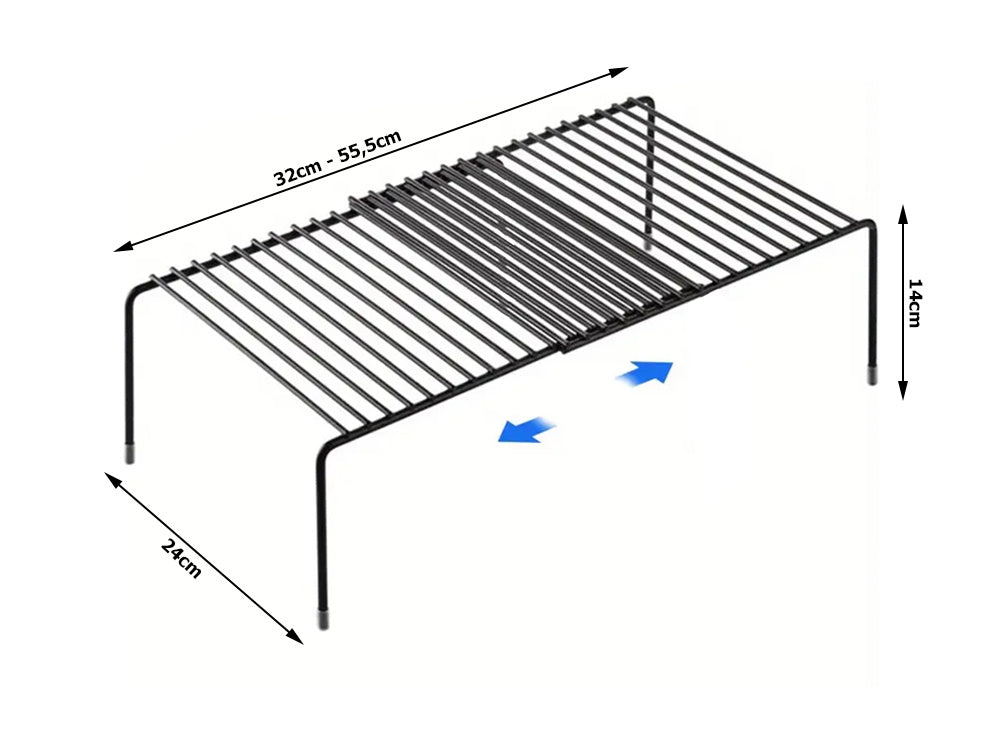 Metāla plaukts ar regulējamu platumu, paplašināms, virtuves organizatoram, melns