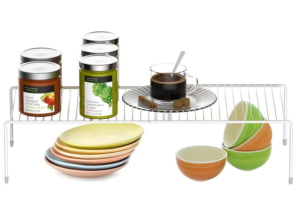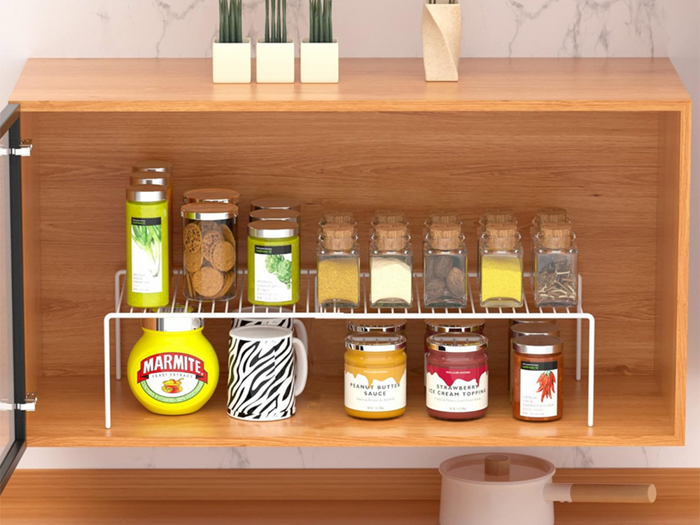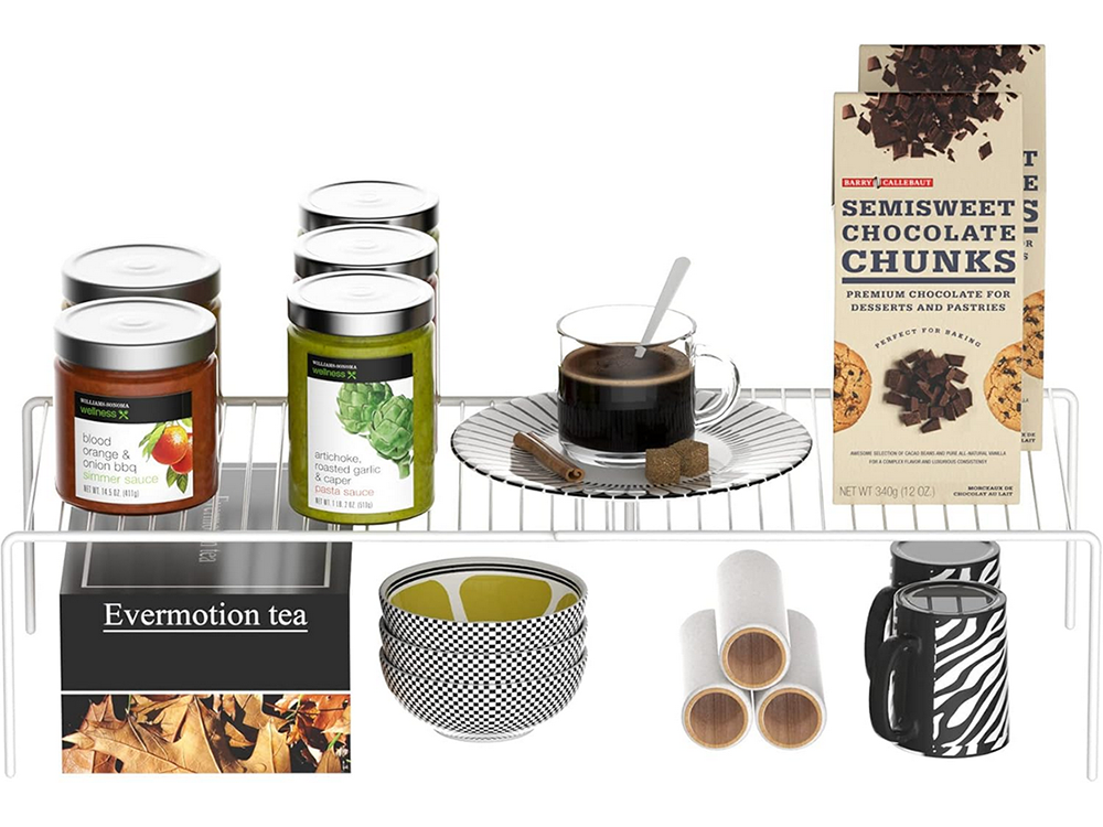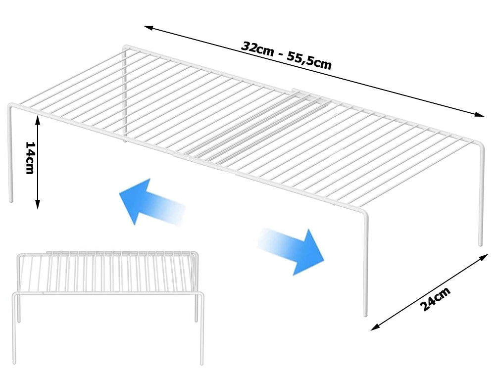Metāla plaukts, regulējams platumā, paplašināms, virtuves organizatoram, balts