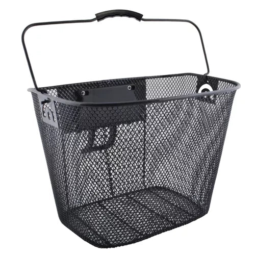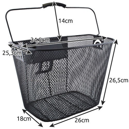 Liels metāla velosipēda grozs, viegli uzstādāms – tas tiek piestiprināts pie stūres, izmantojot klikšķa tipa turētāju. Šī stiprināšanas metode ļauj ļoti ātri piestiprināt un noņemt grozu no velosipēda – bez papildu instrumentu nepieciešamības. Turklāt komplektā ietilpst gumijas paliktņi stūres aizsardzībai, tāpēc nav riska sabojāt vai saskrāpēt stūri. Ietilpīgs – tajā viegli ievietos visus nepieciešamos piederumus, tīklu un pat somu. Var izmantot arī, dodoties iepirkties. Vienkārši atskrūvējiet grozu no velosipēda un ievietojiet tajā iepirkumus, un pēc tam piestipriniet to atpakaļ. Ērts rokturis – pēc atvienošanas no velosipēda to var ērti nēsāt, pastaigājoties pa tirgu vai dodoties ceļojumā vai piknikā, grozu var ņemt līdzi un atstāt velosipēdu tam paredzētā vietā. Liela kravnesība un ietilpība – velosipēda grozs var izturēt slodzi līdz 6 kg un tilpumu 15 l. Tas ļaus pārvadāt vai nēsāt lielu daudzumu mantu. Specifikācija – materiāls: dzelzs, citi polipropilēns; Piemērots velosipēdiem: 20", 24", 26", 27" un 28"; maks. slodze: 6 kg; ietilpība: 15 l; stiprinājumu atstatums: 5,5 cm; maks. stūres diametrs: 2,2 cm; augšējie izmēri: 25,3 x 34,5 cm; apakšējie izmēri: 18 x 26 cm; groza augstums: 26,5 cm; groza svars: 900 g; svars iepakojumā: 910 g. Specifikācijas materiāls: dzelzs, cits polipropilēns; piemērots velosipēdiem: 20", 24", 26", 27" un 28"; maks. slodze: 6 kg; ietilpība: 15 l; stiprinājumu atstatums: 5,5 cm; maks. Stūres rata diametrs: 2,2 cm Izmēri augšpusē: 25,3 x 34,5 cm Apakšas izmēri: 18 x 26 cm Groza augstums: 26,5 cm Groza svars: 900 g Svars iepakojumā: 910 g Iekļauts groza rokturis Ātrais savienotājs Klikšķu sistēmā Montāžas elementi Metāla velosipēdu grozs derēs visiem velosipēdu modeļiem ar riteņu izmēriem 20", 24", 26", 27", 28" un stūres diametru 22 mm. Tāpēc tas labi darbosies ar parastajiem, pilsētas, tūrisma vai MTB velosipēdiem ar vai bez amortizatoriem. Metāla velosipēdu grozs tiek uzstādīts, izmantojot ērtu klikšķa rokturi. Šī montāžas metode ļauj ļoti ātri piestiprināt un noņemt grozu, neizmantojot papildu instrumentus. Komplektā ietilpst gan metāla velosipēdu grozs, gan visi nepieciešamie montāžas elementi. Brīdinājuma saturs: - Izmantojiet produktu paredzētajam mērķim - Pirms braukšanas uzsākšanas pārliecinieties, vai grozs ir droši piestiprināts - Pareizi uzstādiet grozu, lai tas netraucētu velosipēda vadāmību - Nepārsniedziet groza maksimālo slodzi