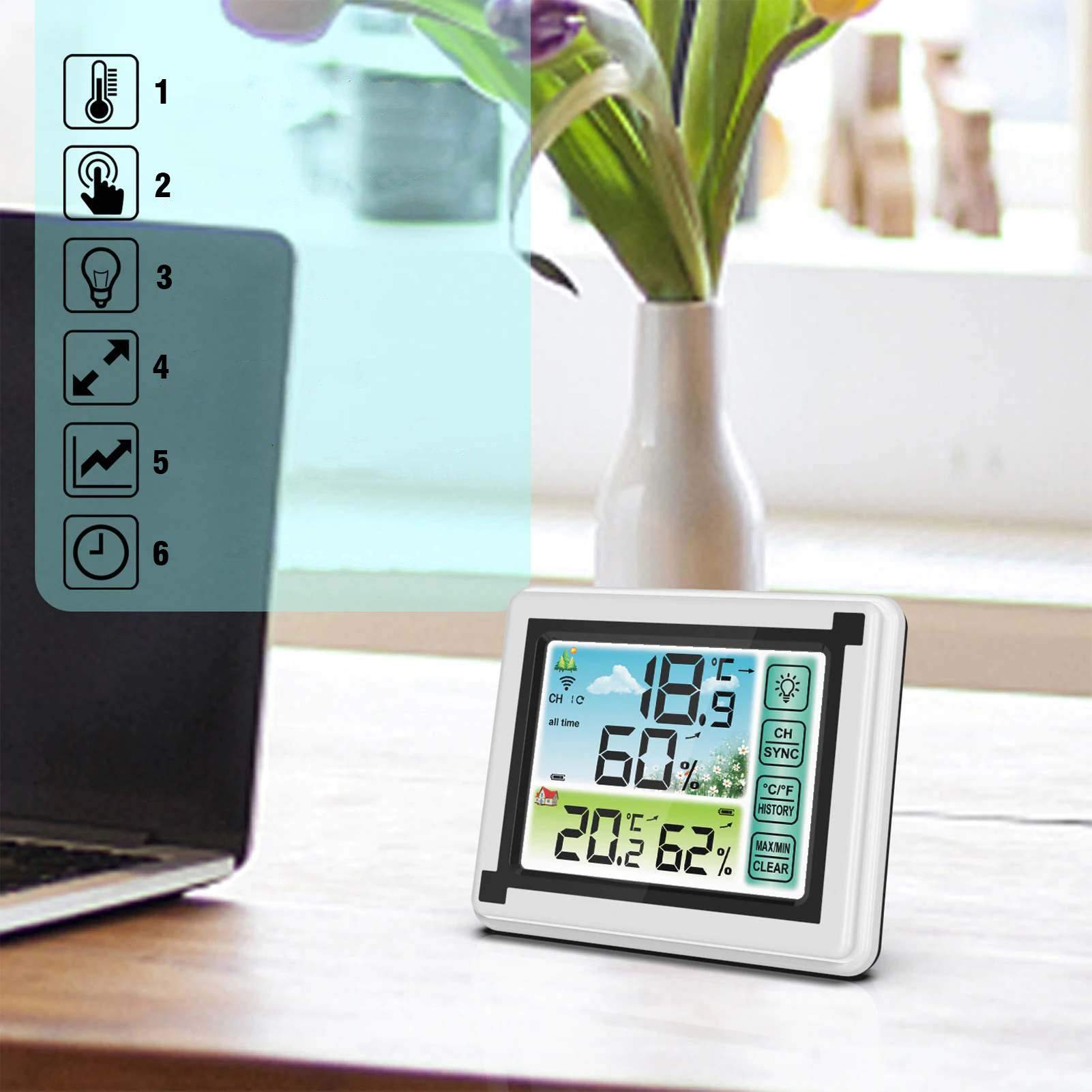 Produktam ir skaidrs, aizmugurgaismots LCD displejs , no kura varat viegli nolasīt visas vērtības. Āra sensors un meteoroloģiskā stacija tiek darbināti ar AAA baterijām.Ierīce ir ieprogrammēta tā, lai tai varētu pieslēgt vairākas zondes, kas atrodas dažādās vietās. Tādā veidā viena ierīce var norādīt vairākus mērījumus vienlaikus! Vadība tiek veikta, izmantojot skārienpogas: