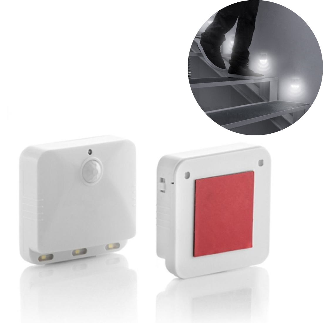 • Ietver: 2 ierīces ar 3 LED baltām gaismām katrā