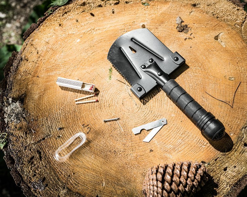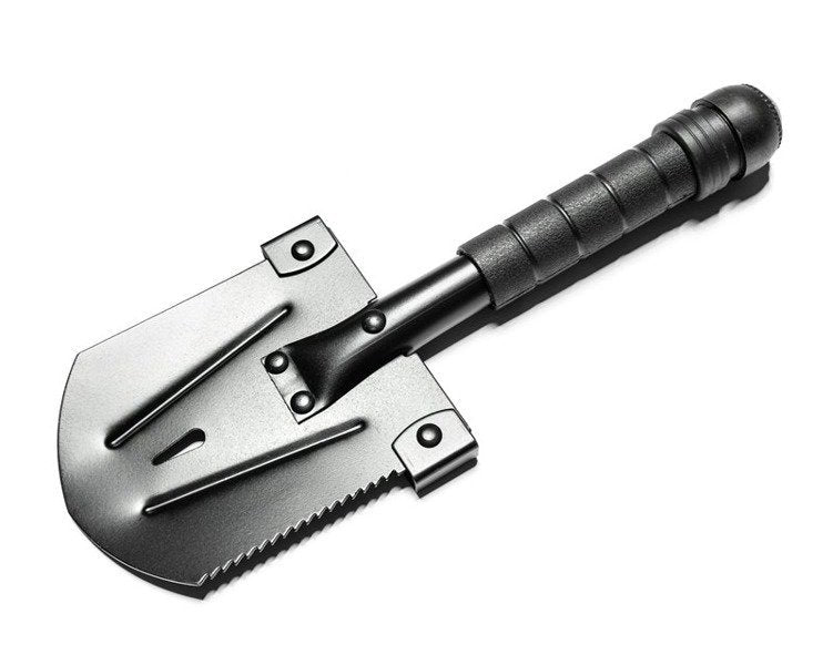 Tūristu daudzfunkcināla lāpsta melnā izturīgā somā. Roktura iekšpusē ir paslēptas dažādas un ļoti nepieciešamas lietas: sērkociņi, makšķerēšanas instrumenti (makšķeraukla, āķis, divi atsvari), naglas, nazis. Pašai lāpstai ir kompass, zāģītis, pudeļu attaisāmais, naglu velknis, sešstūra skrūvgriezis. Lāpstu var izmantot arī kā āmuru. Daudzfunkcionāla lāpsta 8in1: - lāpsta - zāģis - uzgriežņu atslēga - rīks naglu noņemšanai - āmurs - pudeļu attaisāmais - mazs čats - kompas (labāk nekā GPS darbojas bez jaukām) - rokturī var atrast makšķerauklu, naglas, mazo nazi un sērkociņus - izturīga soma