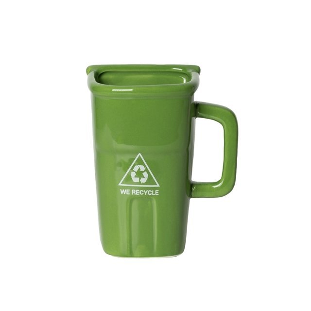Jauka dāvana kafijas vai tējas atkarīgiem un eko frīkiem. Miskastes krūze izskatās kā īsta zaļa atkritumu tvertne. Izklaidējieties, izmantojot to un skatoties uz smaidošiem cilvēkiem apkārt. Funkcijas: - keramikas krūze miskastes formā - ar uzdrukātu "mēs pārstrādājam" - ļoti oriģināls un smieklīgs sīkrīks - jaukas lietas ballītēm un birojam - tilpums: 410 ml - krāsaina dāvanu kastīte - ūdens drošs traukā