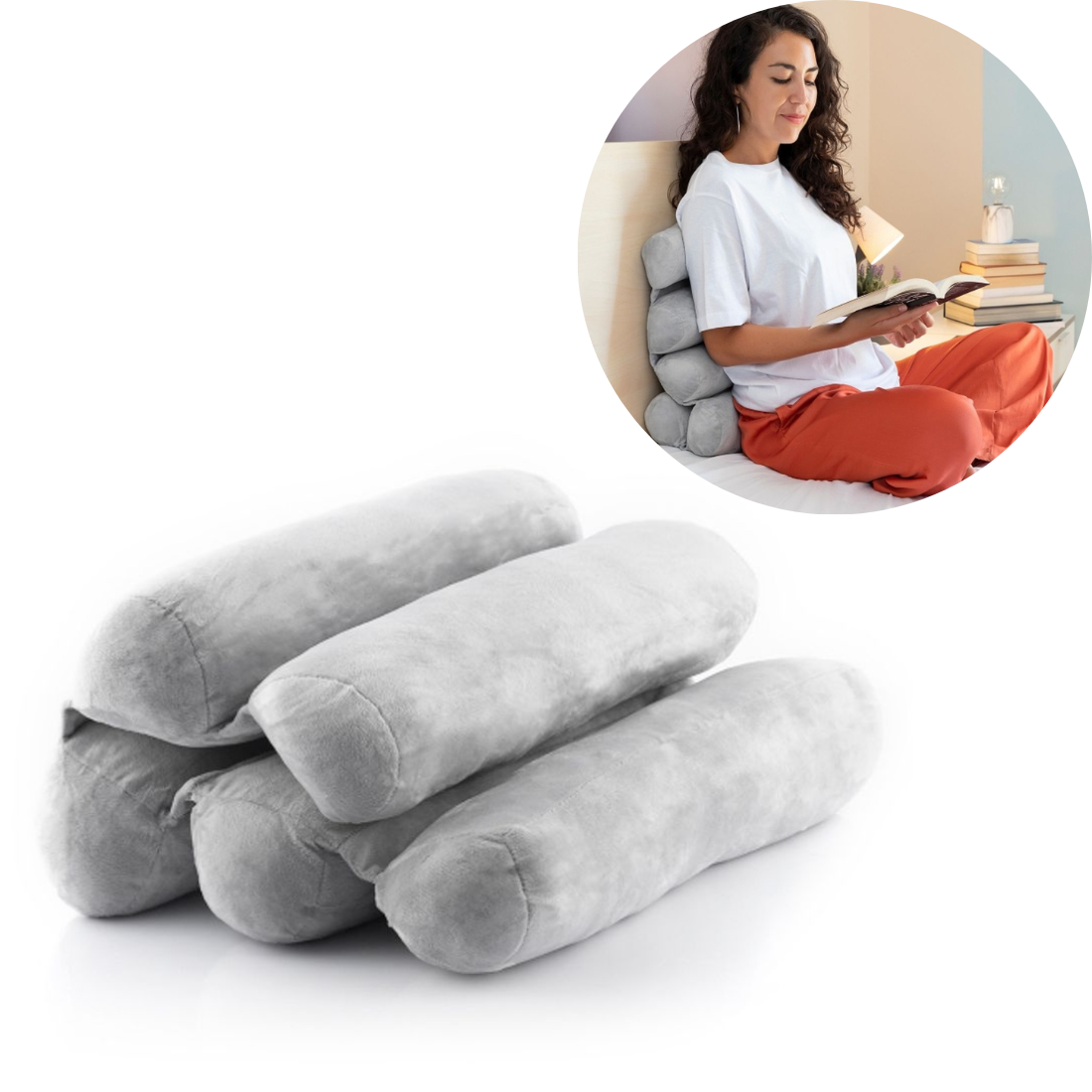 Daudzfunkcionāls rullīšu spilvens ar oriģinālu un daudzpusīgu dizainu, kas jebkurā laikā un vietā viegli pielāgojas dažādām pozām (guļus, sēdus utt.) atkarībā no jūsu vajadzībām un vēlmēm. To var izmantot dažādos apstākļos, piemēram, mājās, birojā, automašīnā utt. (uz dīvāniem, krēsliem, gultām, uz grīdas…), kā arī dažādām aktivitātēm, piemēram, strādājot no mājām, ceļojot, lasot, atpūšoties, guļot utt. Šis oriģinālais ergonomiskais rullīšu dizaina spilvens sastāv no 5 savienotiem rullīšiem, kurus var viegli salocīt un atlocīt. Spilvens ir ļoti ērts, lieliski piemērots atpūtai un relaksācijai, tas ir viegls un ļoti mīksts, un ar patīkamu samtainu sajūtu. Spilvena struktūra palīdz izlīdzināt muguru, kaklu un jostas zonu. Tas ir ļoti praktisks un novērš nepieciešamību izmantot vairākus spilvenus. Spilvens nezaudē savu formu un viegli pielāgojas jebkuram ķermeņa stāvoklim. Spilvenu var mazgāt ar rokām.