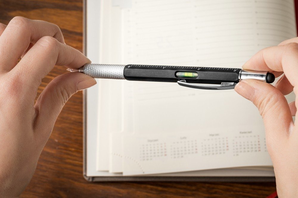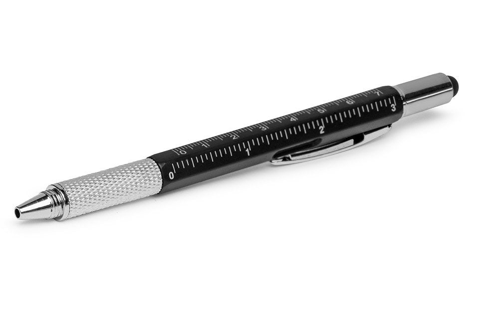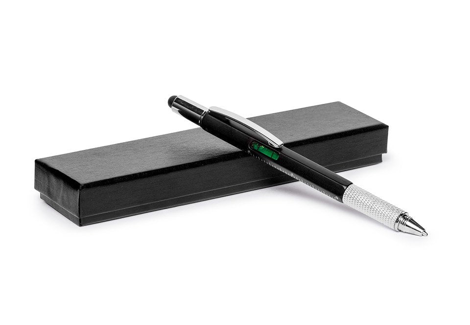 Reizēm ir svarīgi, lai pa rokai būtu pareizi rīki, tāpēc jums ir mūsu daudzveidīgā pildspalva, kas sniedz jums 6 rīkus rakstīšanas instrumentā! Ar lodīšu pildspalvu vienā galā un skārienekrāna irbuli otrā galā. Funkcijas: - 6 funkcijas, kas ir parocīgas tikai vienā pildspalvā - Pieejamās funkcijas: rakstīšana, irbulis skārienekrānam, plakanās galvas skrūvgriezis un amp; philips skrūvgriezis, līmeņrādis un lineāls cm un collās - materiāls: plastmasa (korpuss)+metāls (skrūvgrieža uzgalis) - papīra dāvanu kastīte melnā krāsā - krāsa: melna (pieejams arī sudrabs)