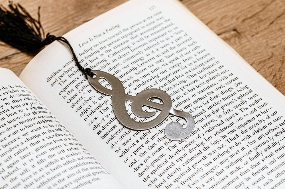 Vai meklējat jauku un oriģinālu grāmatzīmi? Vai jums patīk grāmatas un mūzika? Mums ir lieliska dāvana jums. Mūzikas nots grāmatzīme, kas izgatavota no sakausējuma, lai kalpotu jums ilgus gadus. Funkcijas: - jauka nošu grāmatzīme - ar elegantu zīda pušķi - materiāls: sakausējums (viegls metāls) - 1 gab komplektā - dāvanu kastītē ar melnu zīda lenti - ideāla maza dāvana daudziem gadījumiem