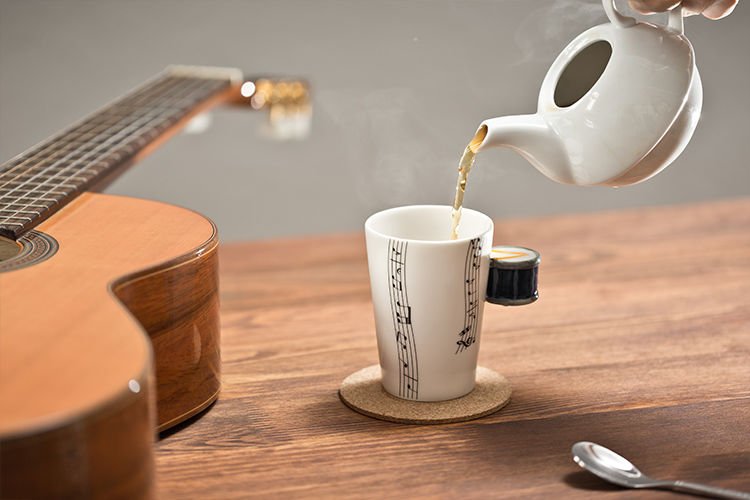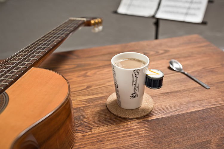 Lieliska dāvana visiem mūzikas ķēmiem. Sāciet savu dienu ar šo mūzikas krūzi. Funkcijas: - eleganta mūzikas krūze ar instrumenta formas rokturi - augstas kvalitātes porcelāns - unikāla dāvana visiem mūziķiem un mūzikas faniem