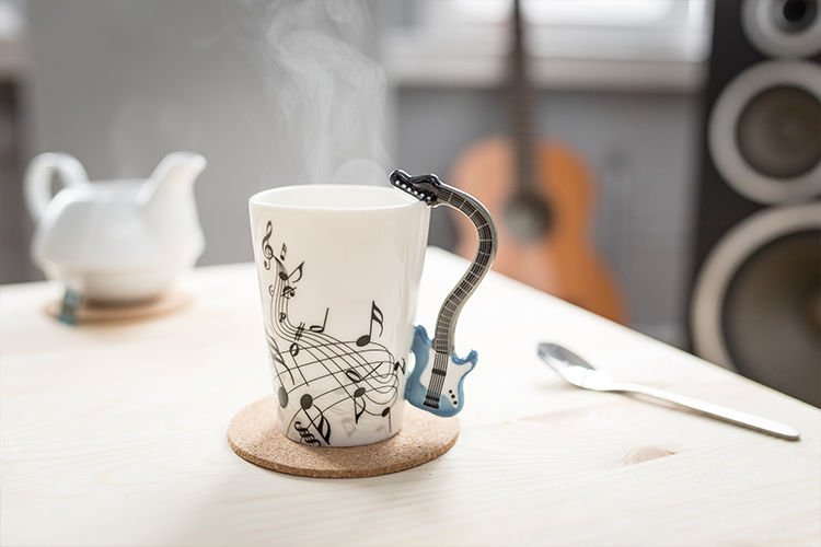 Lieliska dāvana visiem mūzikas ķēmiem. Sāciet savu dienu ar šo mūzikas krūzi. Funkcijas: - eleganta mūzikas krūze ar instrumenta formas rokturi - augstas kvalitātes porcelāns - unikāla dāvana visiem mūziķiem un mūzikas faniem