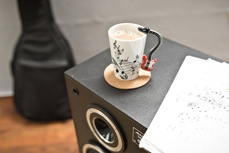 Lieliska dāvana visiem mūzikas ķēmiem. Sāciet savu dienu ar šo mūzikas krūzi. Funkcijas: - eleganta mūzikas krūze ar instrumenta formas rokturi - augstas kvalitātes porcelāns - eleganta dāvanu kastīte - unikāla dāvana visiem mūziķiem un mūzikas faniem