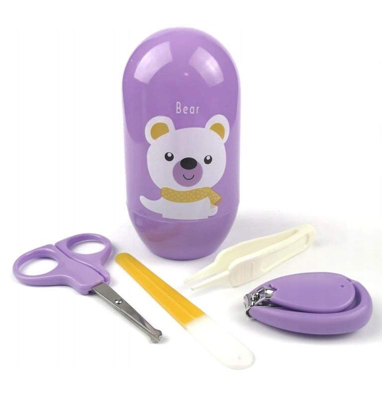 Komplekts bērnu nagu kopšanai. Šķēres un knaibles palīdzēs droši nogriezt bērna nagus. Šķēru noapaļotie gali novērš griezumu risku. Smalka nagu vīle ļauj nolīdzināt nagus, pasargājot Jūsu bērnu no skrāpējumiem. Īpaši noderīgs un praktisks komplekts, kas iepakots higiēniskā maciņā ar estētisku, interesantu izskatu. Ideāli piemērots lietošanai mājās un ceļojumā. Šķēres un knaibles izgatavotas no nerūsējošā tērauda, stikla vīle un pincete.