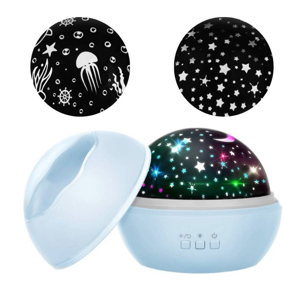 naktslampu vai projektoru, lai uz sienām un griestiem parādītu skaistus zvaigžņu