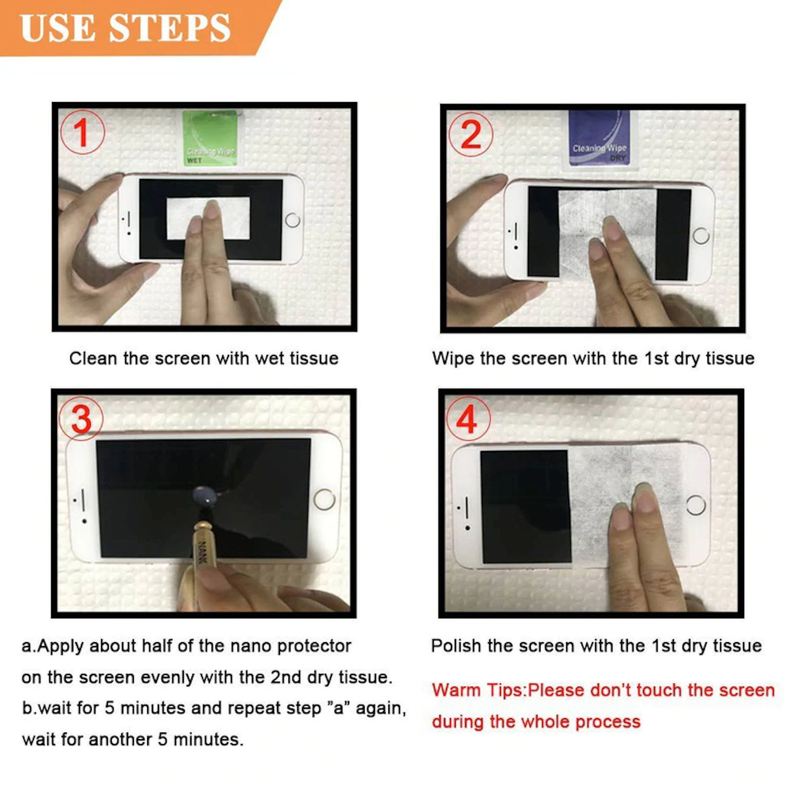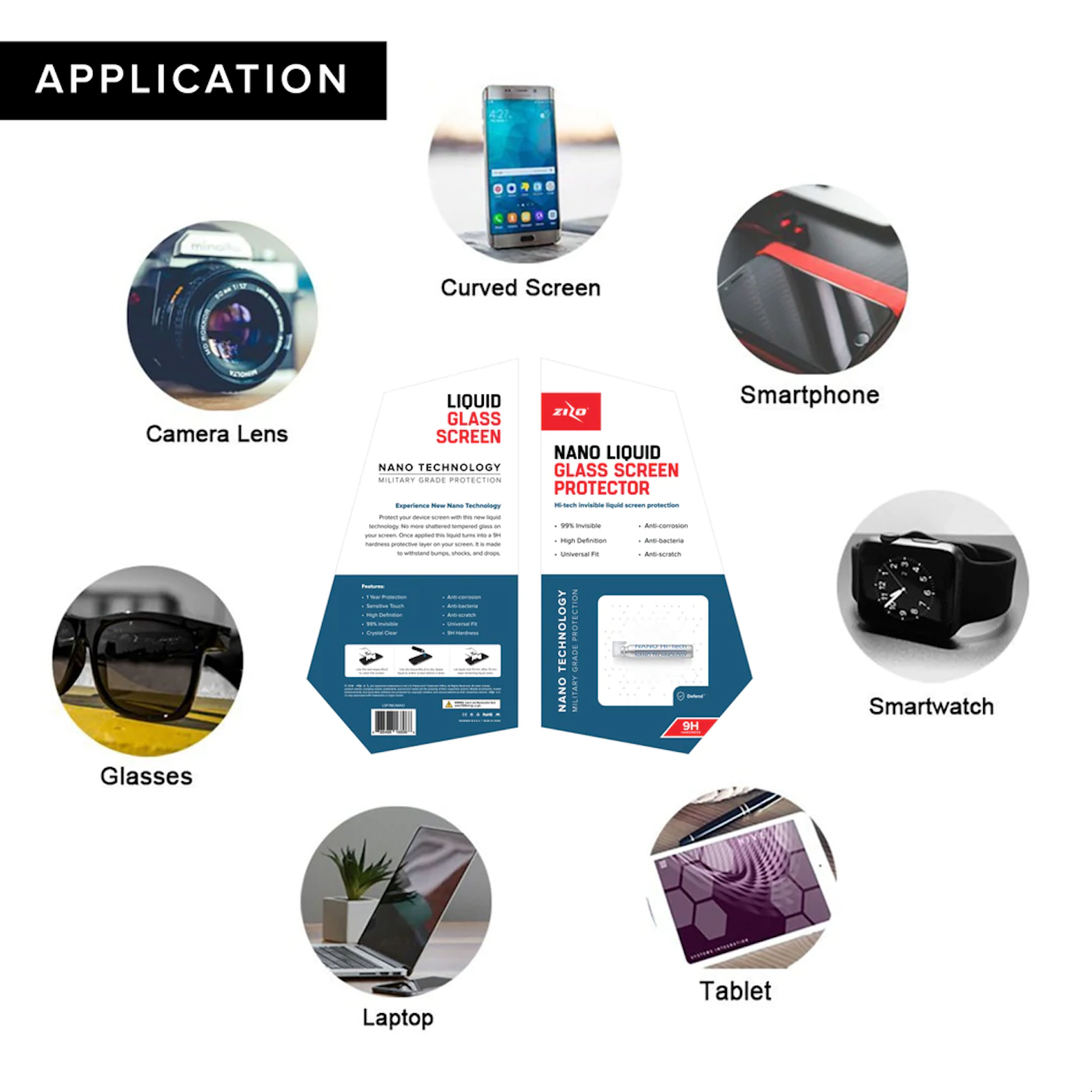 NANO CRYSTAL var izmantot arī planšetdatoru displeju, viedpulksteņu, tālruņa kameru un daudzu citu virsmu aizsardzībai! NANO CRYSTAL labi darbosies kā uz plakanām, tā arī izliektām virsmām. Šķidrā stikla uzklāšana ir daudz vienkāršāka nekā rūdīta stikla vai aizsargplēves uzlikšana!