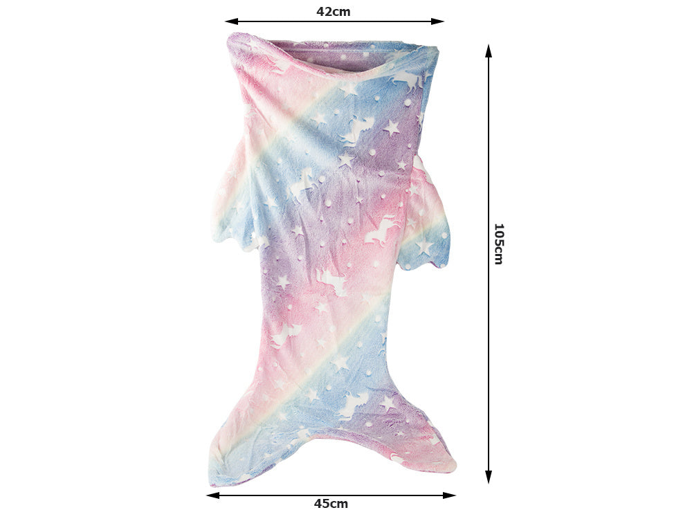 Nāriņas astes formas sedziņa-guļammaiss, silts, mirdzošs meitenēm, mīksts zirgs. Jūsu mazā princese būs sajūsmā par šo burvīgo segu nāriņas astes formā. Tā ir ne tikai skaists papildinājums istabai, bet arī praktisks pārklājs, kas uzturēs viņu siltumā un komfortā. Lieliski piemērota spēlēšanai, grāmatu lasīšanai, pasaku skatīšanai vai atpūtai. Mīkstais, taustes materiāls nodrošina siltumu un komfortu. Sega ir pārklāta ar motīviem, kas mirdz, kad gaismas ir izslēgtas, piešķirot maģisku efektu! Nāriņas stila guļammaiss, lai jūsu mazā meitene justos kā zemūdens piedzīvojumu varone. Skaistas varavīksnes krāsas, pilnas dzīvespriecīgu toņu. Piemērots bērniem, kuri sapņo būt par nāru, atpūšoties. Šī ir lieliska dāvana jebkurai meitenei, kas mīl nāras un vēlas pievienot nedaudz maģijas savai ikdienas dzīvei. Tehniskās specifikācijas: ? Produkta kods: ? Mīksts flīss, patīkams pieskārienam ? Spīdīgs tumsā, fluorescējoši motīvi ? Krāsa: varavīksne ar vienradža un zvaigžņu motīviem Izmēri: ? Garums: ? Platums augšpusē: ? Platums apakšā: Piezīme!!! Izmēri var atšķirties +/- līdz 2 cm atkarībā no materiāla izmēriem. Komplektā ietilpst: ?? sega, guļammaiss ?? nāriņas aste ?? oriģinālais iepakojums
