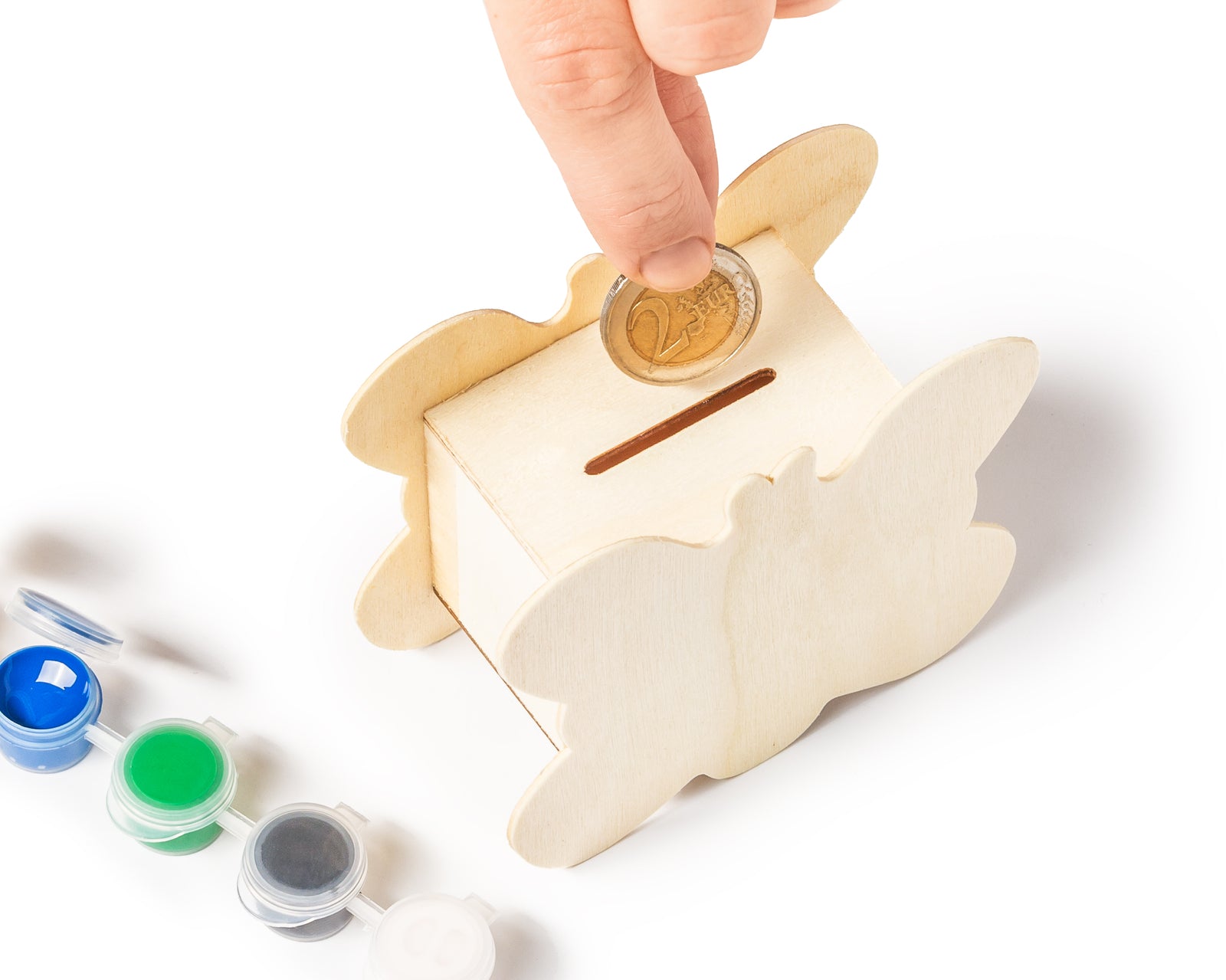 Šī jautrā varde ir no saplākšņa izgatavota naudas banka, kuru varat krāsot pats un sagatavot unikālu dāvanu savai ģimenei vai draugiem vai izmantot pats :) Augšpusē atradīsiet slotu, kur likt un ietaupīt naudu, bet apakšā plastmasas korķis lai piekļūtu, kad nepieciešams ietaupījums. Smieklīgs un radošs veids, kā iemācīt bērniem ietaupīt naudu :) Funkcijas: - saplākšņa naudas banka, ieskaitot krāsas un otu - krāsojiet to pats, izklaidējieties un izveidojiet unikālu dāvanu - ideāla dāvana bērniem daudzos gadījumos - bērniem patiks - izmērs: 17,5x13x6,5 cm - balta kaste