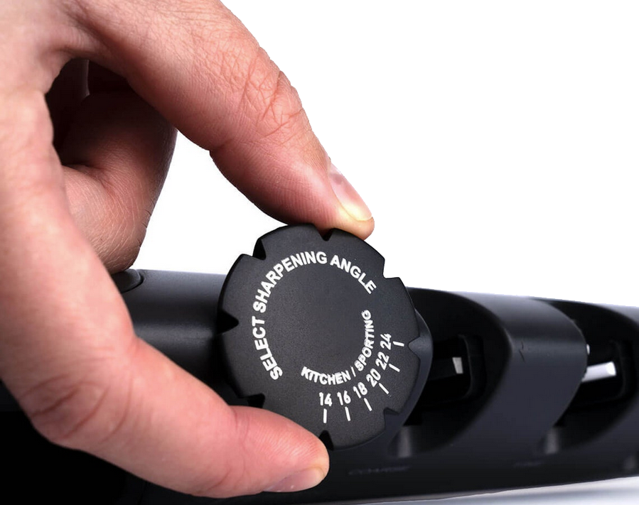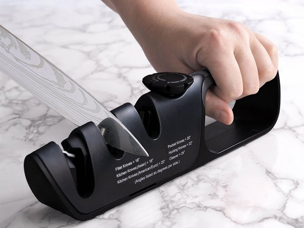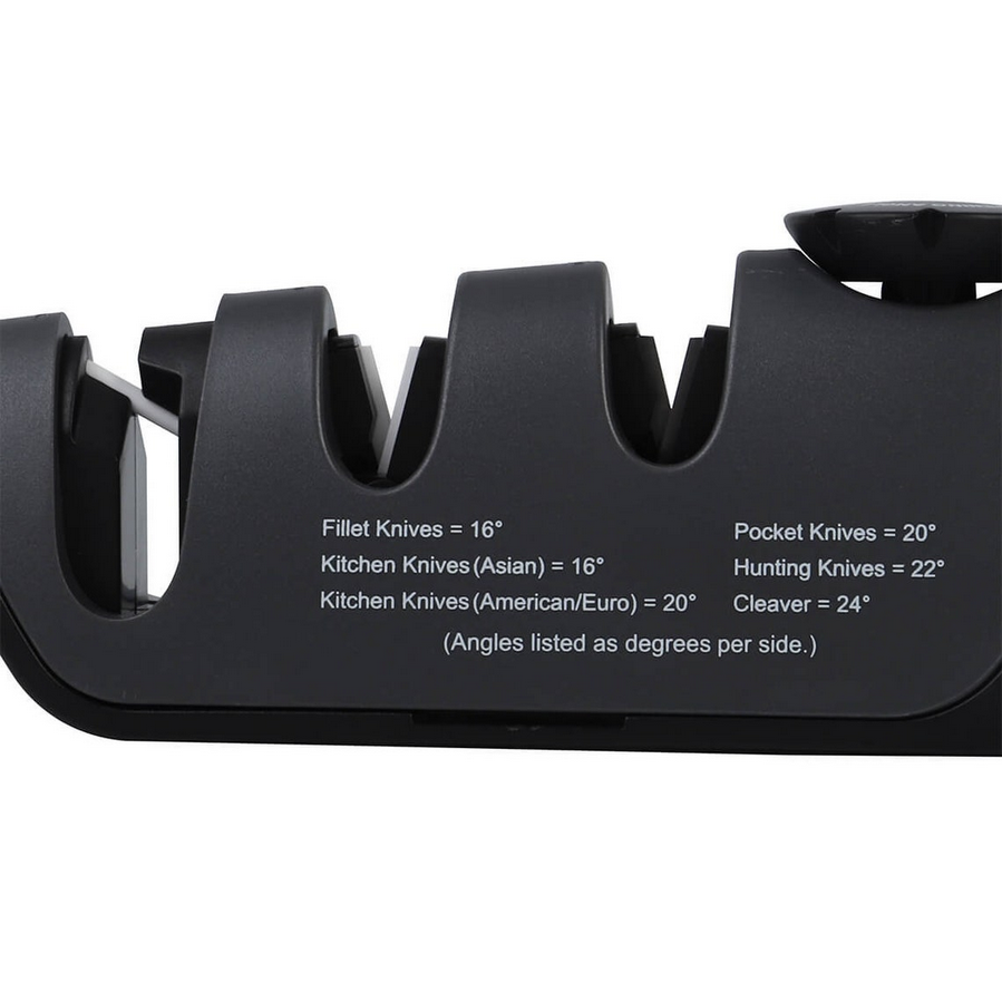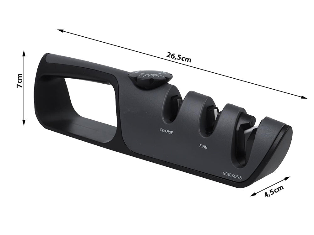 Nažu asināmais virtuves šķērēm ar neslīdošu regulēšanu. Vai jums ir neasi naži? Šis asināmais noteikti noderēs jūsu mājās. Pateicoties asināmajam, jūs varat precīzi uzasināt un atjaunot savus nažus. Tas ir viegli lietojams, efektīvs un drošs lietošanā. Izmantotais mehānisms un pareizais akmeņu novietojums nodrošina pareizu asināšanas leņķi. Šķēru asināšana. Iespējama asināšanas leņķa regulēšana: regulējams asināšanas leņķis 14° - 24° diapazonā dažādiem nažu veidiem. Šāds diapazons ļauj asināt praktiski jebkura veida nažus, sākot no virtuves nažiem fileju griešanai, saliekamajiem nažiem ikdienas lietošanai, medību nažiem utt. Ieteicamais asināšanas leņķis: - virtuves naži, fileju naži, precīzijas griezējinstrumenti, - - EDC naži, pārnēsājamie naži, - - lieli EDC locīšanas naži, medību naži, tūrisma naži, taktiskie naži, izdzīvošanas naži. Ideāli piemērots Eiropas un japāņu nažiem. - rupja (rupja asināšana): stipri neasu asmeņu remontam un asināšanai. - smalka (smalka asināšana): asmens izlīdzināšanai un galīgajai pulēšanai. - šķēres: īpaša ligzda šķēru asināšanai. Ergonomiskā forma un neslīdošā pamatne nodrošina stingru satvērienu rokā un pārliecību, ka asināmais neizkritīs no rokas. Asmens vāciņu var noņemt no roktura un mazgāt zem tekoša ūdens. Lai asinātu nažus, ērti satveriet rokturi ar roku un ar otru roku pārvietojiet naža asmeni tikai vienā virzienā "pret sevi". - daudzpusīgs: piemērots tērauda nažiem, keramikas nažiem un šķērēm. - viegli lietojams: intuitīvs asināšanas process gan iesācējiem, gan pieredzējušiem lietotājiem. - precizitāte: regulējams asināšanas leņķis, lai ideāli pielāgotos naža veidam. - kompakts izmērs: neaizņem daudz vietas virtuvē. tehniskās specifikācijas: - trīsfāžu nažu asinātājs - leņķa regulēšana: - augsta konstrukcijas kvalitāte - izturīgs dizains - ātra un precīza asināšana - šķēru asināšana - neslīdošā pamatne - abrazīvs materiāls: volframa karbīds, keramika - ērts rokturis izmēri: - garums: - platums: - augstums: komplektā ietilpst: - nažu asinātājs