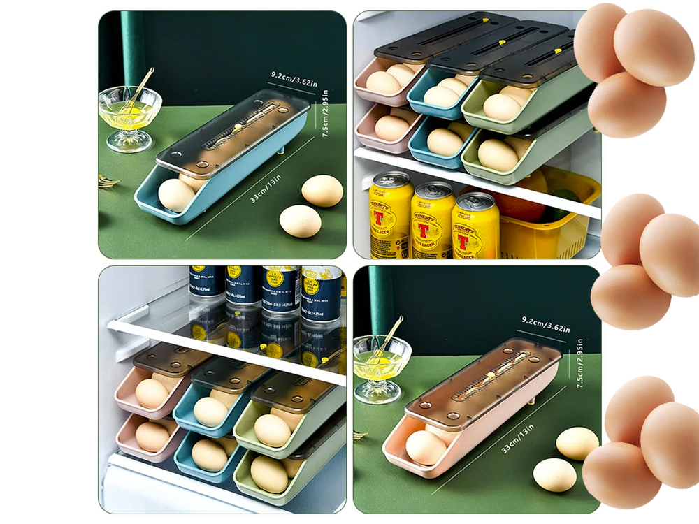 Olu kastes ledusskapja organizators olu paplāte Mūsu olu konteiners ir neaizstājams rīks jūsu virtuvē. Tajā var ievietot aptuveni 7 olas atkarībā no olu lieluma, nodrošinot tām drošu un funkcionālu uzglabāšanas vietu. Turklāt olas automātiski noslīd uz leju, kad to paņemat, atvieglojot piekļuvi. Aizmirstiet par apjomīgu iepakojumu un nejaušu olu sadaušanu. Mūsu olu konteiners nodrošina praktisku un funkcionālu virtuves risinājumu, kas atvieglos jums ikdienas ēdienu gatavošanu un ledusskapja tīrību. Funkcionālais olu konteiners ar iebūvētu datuma funkciju ir moderns risinājums olu ērtai uzglabāšanai un to svaiguma izsekošanai. Pateicoties praktiskajam datuma slīdnim, varat atzīmēt dienu, kad olas tika ievietotas konteinerā, vai to derīguma termiņu. Tehniskās specifikācijas: - iespēja sakraut vienu konteineru virs otra - vieta 7 olām - konteiners - paplāte - viegli tīrāms - datuma funkcija (no 1 līdz 31) - organizatora izmēri: - augstums: - platums: - garums: - olu konteinera augstums: - konteinera platums iekšpusē pieejamās krāsas: ražotāja nejaušās preču iepakošanas vairumtirdzniecības iepakojumos dēļ preces tiek piegādātas dažādās krāsās. Krāsu izvēle nav iespējama. - zila - rozā - zaļa. Komplektā ietilpst: - olu organizators