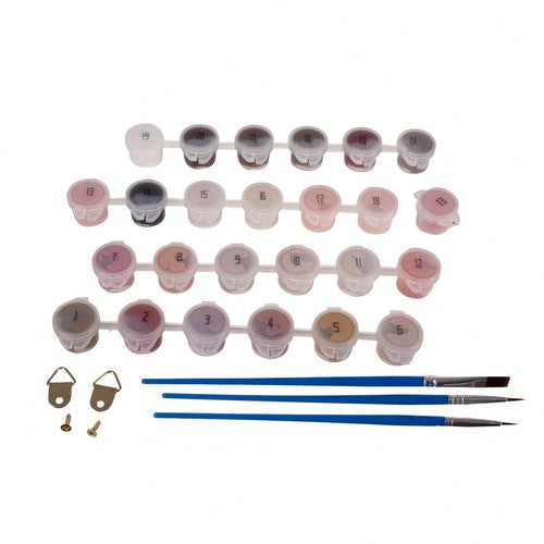 Tajā ir iekļautas krāsas, otas un gleznojamais attēls.