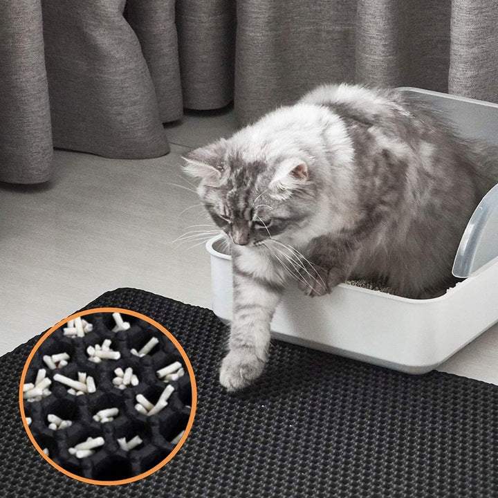 • Lielais paklājiņa izmērs padara to ideāli piemērotu praktiski visām tirgū pieejamajām kaķu kastēm.