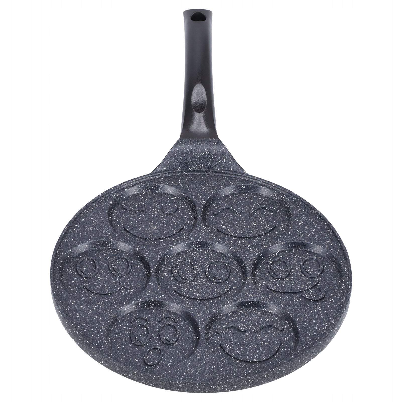 Pateicoties šim produktam, jūs varat izveidot interesantas brokastis, kuru mērķis ir padarīt rītu patīkamāku un priecīgāku. Panna ar septiņām unikālām sejām jautrā veidā dažādos jūsu ikdienu. Smieklīgas emocijzīmes uz pankūkām mudinās bērnus ēst. Īpaši reljefi apļi palīdzēs pagatavot ideālas formas pankūkas un neļaus tām iztecēt pa visu pannu.