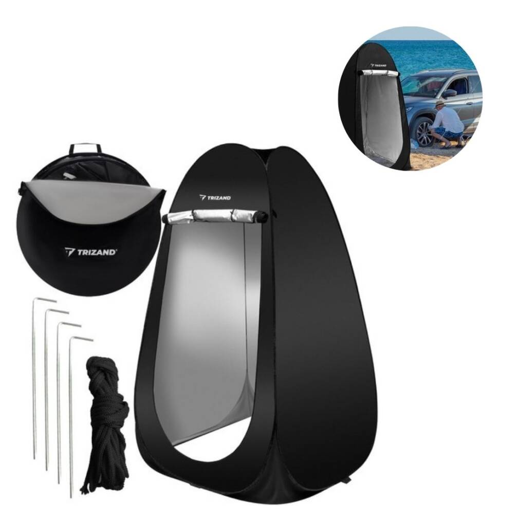 Tas var darboties kā ģērbtuve, dušas kabīne, tualetes telpa vai uzglabāšanas zona. Izturīgais, ūdensnecaurlaidīgais materiāls nodrošina, ka jūsu mantas paliek sausas, savukārt dubultā ieeja nodrošina papildu drošību. Papildus funkcija ir iebūvēts logs aizmugurē ventilācijai.
