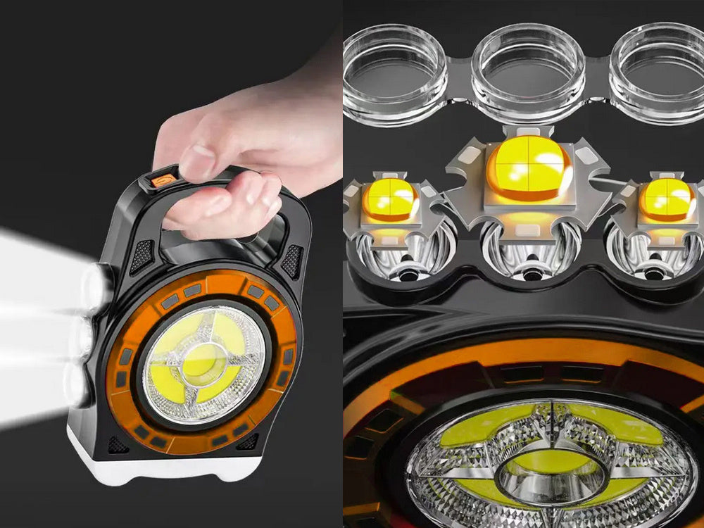 Pārnēsājams, uzlādējams saules lukturītis ar LED gaismas barošanas bloku, atstarotāja jaudu