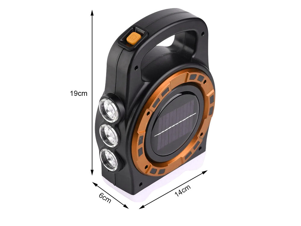 Pārnēsājama saules lukturīte ar uzlādējamu LED gaismas akumulatoru un atstarotāja jaudu. Neticama izturība, īpaši liels spilgtums un lietošanas ērtums padara šo lukturīti par ideālu lukturīti aktivitātēm brīvā dabā. Lukturi var izmantot kā klasisku rokas lukturīti vai pakārt to kā laternu. Tas noderēs automašīnā nakts laikā, ja notiek strāvas padeves pārtraukumi, vai mājās strāvas padeves pārtraukumu, elektrības kļūmju un citu ārkārtas situāciju gadījumā. Ļoti praktiski un ērti. Tam ir priekšpuse, sāni un apakša, no kurām izvēlēties atkarībā no jūsu vajadzībām. Visus režīmus var pārslēgt ar vienu pogu. Lukturi var uzlādēt, izmantojot saules paneli vai USB kabeli. Turklāt lukturīti var izmantot arī, piemēram, kā tālruņa lādētāju. Lukturītis ir neaizstājams: - garāžā - ārpus pilsētas - dārza dārziņā - mājās - teltī - kempingā. Tehniskās specifikācijas: - modelis: - izgatavots no augstas kvalitātes materiāliem - diodes: LED COB - ūdensizturības klase: - uzlādes laiks: - apgaismojuma laiks: - apgaismojuma režīmu skaits: - jauda: - praktisks un ērts - barošanas avots: iebūvēts - uzlādējams akumulators - akumulators: 2400 mAh - uzlāde: micro USB un saules enerģija - power bank funkcija - diametrs: - izmēri: - krāsa: zelta. Komplektā ietilpst: - saules lukturītis - micro USB kabelis uzlādei