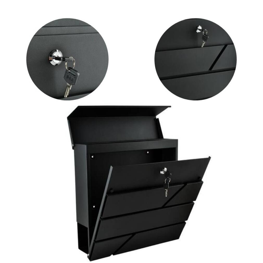 * Kastes priekšējās durvis plaši atveras, lai ērti piekļūtu jūsu pastam.