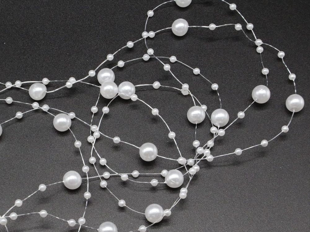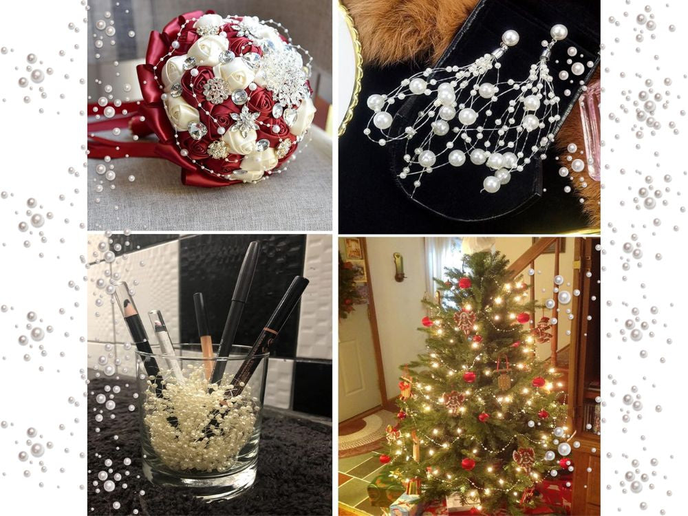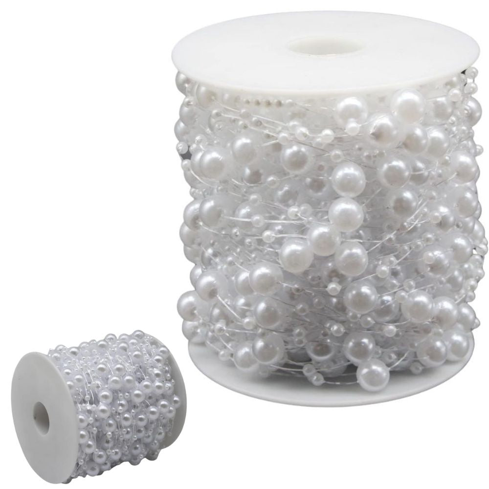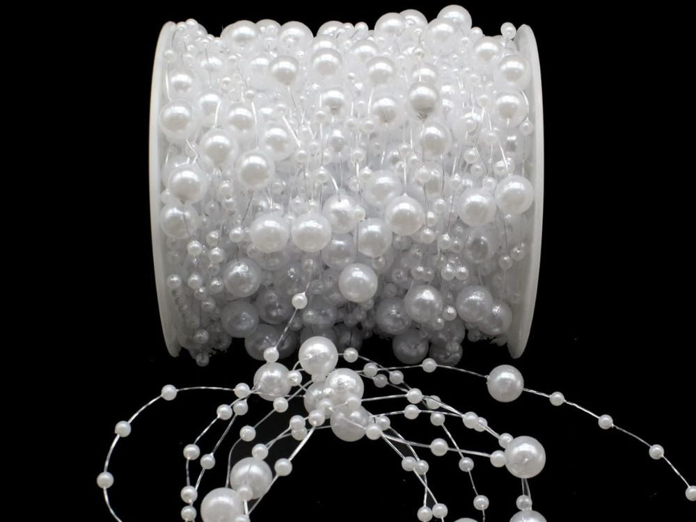 Pērļu baltas lustras pērles Ziemassvētku eglītes ķēdes krelles 8 mm spole 5 m