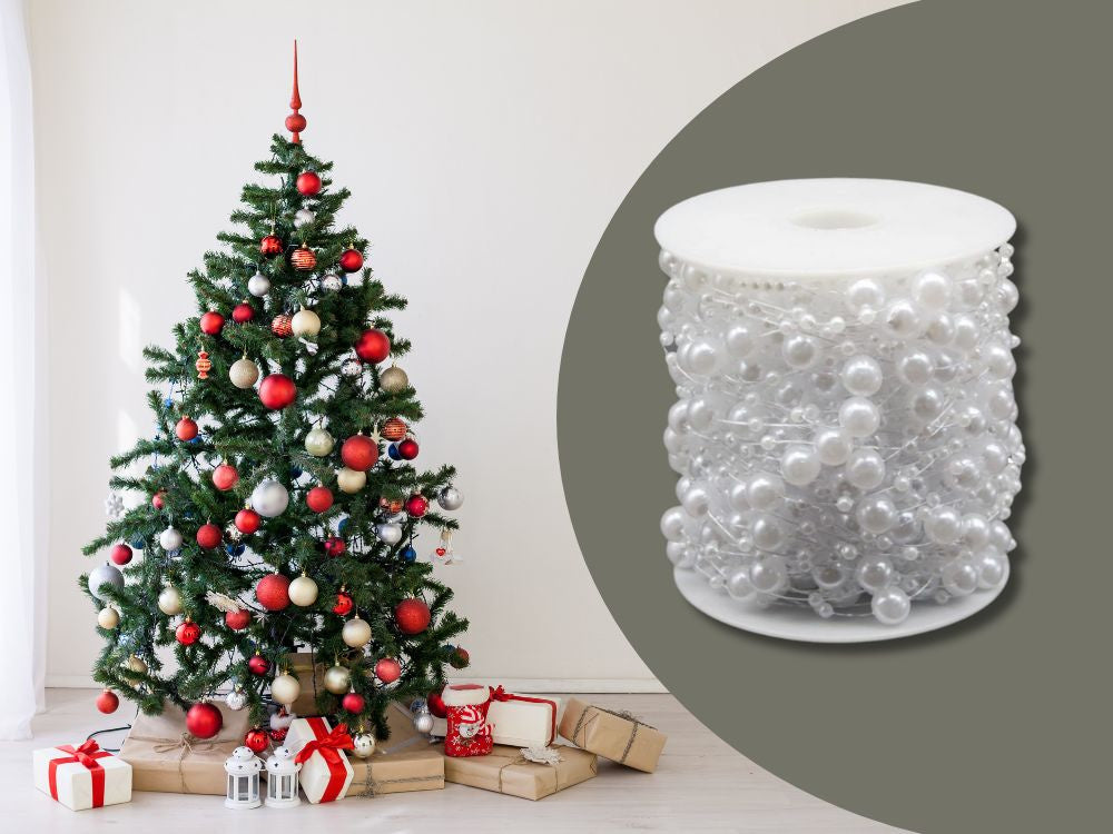 Pērļu vītne, baltas pērles, Ziemassvētku eglītes ķēdītes, 8 mm spole, 5 m. Baltā pērļu vītne ir elegants rotājums, kas ir ideāli piemērots Ziemassvētku eglītei vai citiem Ziemassvētku rotājumiem. Tā sastāv no smalkām pērlēm, kas savērtas ķēdītē, padarot to ideāli piemērotu gan mazu, gan lielāku eglīšu rotāšanai. Vītne piešķir mirdzumu un smalku šarmu, lieliski saderot ar citiem Ziemassvētku rotājumiem. Tās elegantais dizains padara to piemērotu klasiskām kompozīcijām, un pērļu baltā krāsa harmonizē ar gandrīz jebkuru dekoratīvo stilu. Tehniskās specifikācijas: ? Produkta kods: ? Augstas kvalitātes meistarība ? Ideāli piemērota Ziemassvētku eglītes rotāšanai ? Unikāls rotājums ? Kopējais garums: ? Lielāku bumbiņu diametrs: ? Mazāku bumbiņu diametrs: ? Krāsa: balta. Komplektā ietilpst: ?? Ķēdīte