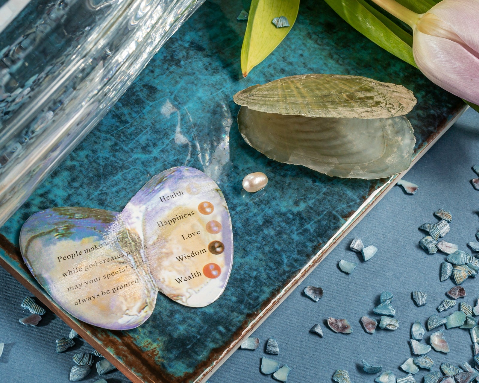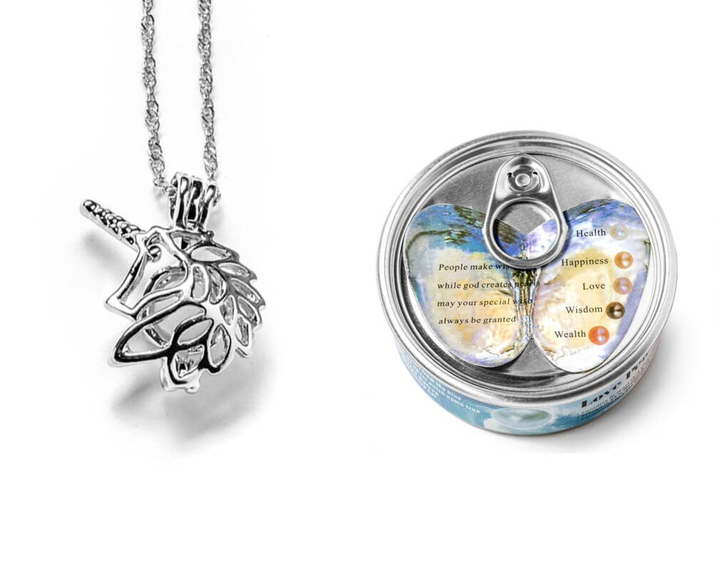 Lielisks un romantisks dāvanu komplekts ar skaistu tumsā mirdzošu pērļu un perāla imitāciju. Jūsu mīlestības pērle no austeres ir 100% dabiska pērle. Tā ir kultivēta pērle, kuras attīstībai ir nepieciešami vismaz 3–5 gadi. Mīlestības pērlei sasniedzot savu galīgo briedumu 5 līdz 8 milimetru diametrā, sākotnējais kairinātājs dabiski izkliedējas, atstājot tikai pašu pērli. Katrai pērlei var būt atšķirīga krāsa, krāsu atklāsiet pēc austeres atvēršanas. - balts tas ir veselībai - persiks tas ir laimei - krēms ir mīlestībai - gaiši violets tas ir bagātībai - melns tas ir gudrībai Komplektā ietilpst: maza kanna ar austeru un jūsu dabisko pērli iekšpusē, pilināms kulons uz ķēdes, ieskaitot pērļu imitāciju, kas mirdz tumsā ko, protams, var aizstāt ar dabīgo pērli no austeres.