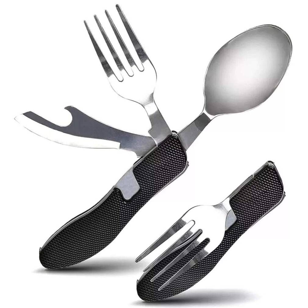Kabatas militārie un tūrisma piederumi – nazis ar pudeļu nazi, dakšiņu un karoti, kas integrēti vienā parocīgā kabatas nazī, ko vienmēr varēsiet paņemt līdzi! Tas ir uzticams un universāls instruments, bez kura ir grūti iedomāties maltīti ārā!