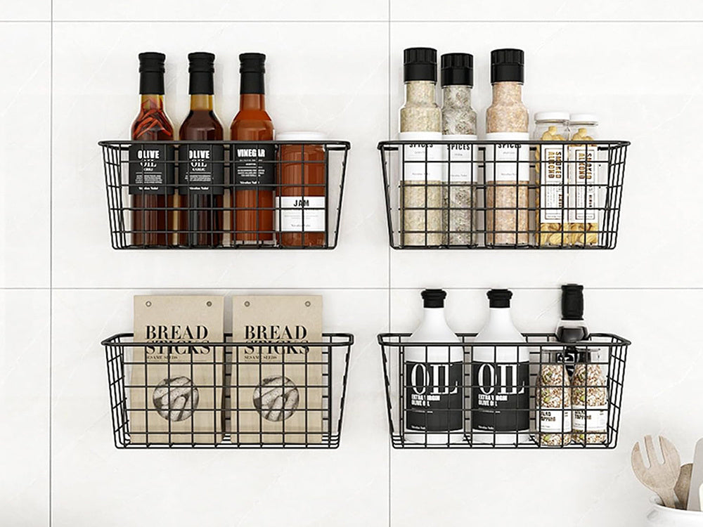 Piekarināms grozs, metāla organizators, piekarināms virtuves plaukts, melns