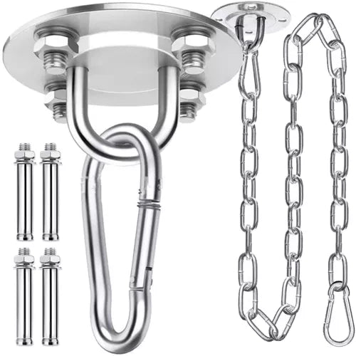 Universāls šūpuļtīkla stiprinājuma komplekts šūpolēm – komplekts šūpolēm vai šūpuļtīklam ir būtisks aksesuārs, kas nodrošina drošu un stabilu šo populāro dārza, terases vai mājas aprīkojuma elementu piekari. Mūsu komplekts ļauj viegli un droši uzstādīt šūpoles vai šūpuļtīklu pie griestiem. Lieliski piemērots: šūpolēm, šūpuļtīkliem, Brazīlijas krēsliem, boksa maisiem, nojumēm un jogas virvēm. Pilns komplekts – komplektā ietilpst izturīgi elementi: karabīnes, izplešanās enkuri, izturīga un gara ķēde un griestu kronšteins. Celtspēja līdz 250 kg – komplekts, ko izmanto kā šūpoļu vai šūpuļtīkla stiprinājumu, ir ļoti izturīgs. Tā maksimālā slodze ir līdz 250 kg. Vienkārša uzstādīšana – tas ir praktisks un drošs risinājums, kas ļauj viegli pakārt šos populāros atpūtas elementus. To var viegli uzstādīt patstāvīgi, izmantojot pamata instrumentus, kas pieejami jūsu mājās. Vienkārši izurbiet caurumus un ieskrūvējiet enkurus, piestipriniet rokturi un pievelciet enkurus. Specifikācija - ražotājs: iso trade; zīmols: malatec; maksimālā slodze: 250 kg; materiāls: dzelzs; karabīnes izmēri: 8 cm; skrūves diametrs: 1 mm; Skrūves garums: 7 cm; ķēdes garums: 152 cm; svars: 0,722 kg; svars iepakojumā: 0,756 kg. Komplekta specifikācijas: ražotājs: iso trade; zīmols: malatec; maksimālā slodze: 250 kg; materiāls: dzelzs; karabīnes izmēri: 8 cm; skrūves diametrs: 1 mm; skrūves garums: 7 cm; ķēdes garums: 152 cm; svars: 0,722 kg; svars iepakojumā: 0,756 kg; komplektā iekļauts griestu stiprinājums; 4 izplešanās enkuri; 2 karabīnes; ķēde. Šūpoļu vai šūpuļtīklu stiprinājuma komplekts ir praktisks un drošs risinājums, kas ļauj viegli pakārt šos populāros atpūtas priekšmetus. Pateicoties augstas kvalitātes materiāliem un pārdomātam dizainam, komplekts nodrošina izturību un lietošanas komfortu, ļaujot baudīt atpūtu brīvā dabā vai mājās. ideāli piemērots: šūpolēm, šūpuļtīkliem, Brazīlijas krēsliem, boksa maisiem, nojumēm un jogas virvēm.