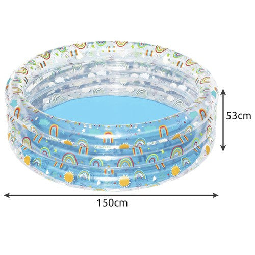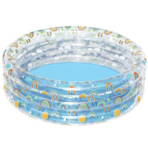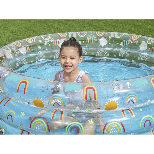 Bestway piepūšamā baseina mīkstās sienas – pateicoties tam, ka baseinam ir biezas, mīkstas un augstas sienas, tas nodrošina drošu atbalstu bērniem, kas tur uzturas. Tas ir īpaši piemērots maziem bērniem. 3 riņķi – baseins sastāv no trim krāsainiem riņķiem. Katrs no tiem tiek pumpēts atsevišķi. Pateicoties tam, baseins ir stabilāks. Nav jāpiepūš visi apļi, lai bērns varētu ieiet iekšā un spēlēties. Izturīgs materiāls – piepūšamais baseins ir izgatavots no īpaši izturīga vinila, kas garantē bezrūpīgu, daudzas jautrības stundas mājās vai dārzā. Turklāt tam ir 3 drošības vārsti – tas novērš gaisa izplūšanu pēc piepūšanas. Daudzfunkcionāls – dušas paliktnis ir lieliski piemērots gan dārzam, gan mazuļa istabai. Tajā var liet ūdeni vai mest bērna rotaļlietas. To var izmantot arī kā sauso bumbu baseinu. Specifikācija – materiāls: PVC; krāsa: daudzkrāsains; tips: piepūšams; forma: apaļa; vecums: 6+; tilpums: 445 l; materiāla biezums: 0,24 mm; izmēri (diametrs astoņi): 1553 cm; Svars: 2,5 kg Specifikācija Materiāls: PVC Krāsa: daudzkrāsains Tips: piepūšama Forma: apaļa Vecums: 6+ Tilpums: 445 l Materiāla biezums: 0,24 mm Izmēri (diametrs astoņi): 1553 cm Svars: 2,5 kg