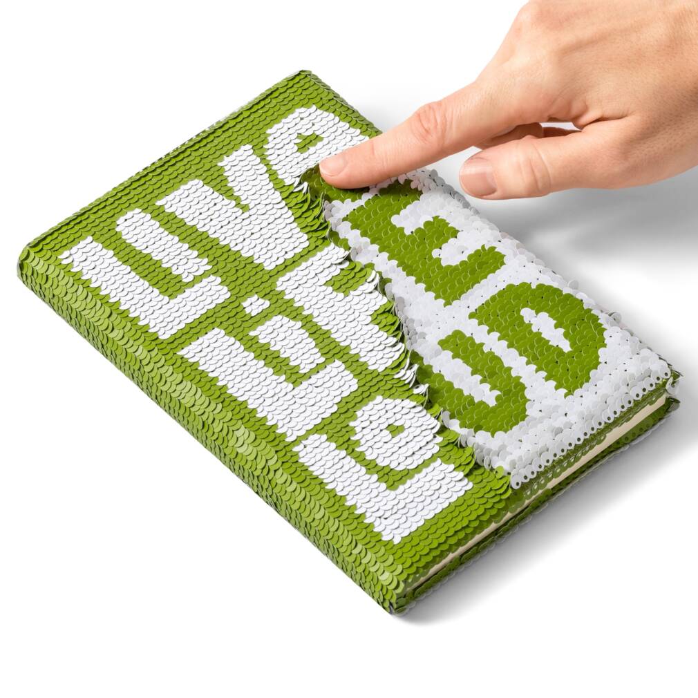 Jauka papīra piezīmju grāmatiņa ar fliteriem un tekstu: Live Life Loud. Vizītes divās krāsās, un tās ir atgriezeniskas. Funkcijas: - vizulis piezīmju grāmatiņa ar tekstu: Live Life Loud - vizulis divās krāsās zaļā un baltā krāsā, un tās ir atgriezeniskas - lai jūs varētu mainīt teksta un piezīmju grāmatiņas krāsu - uz aizmugurējā vāka varat zīmēt ar pirkstu savus rakstus :) - piezīmjdatora izmērs: A5 - vāks: cietais vāks ar fliteriem - odere - 192 lapas - papīra svars: 80 g/m2