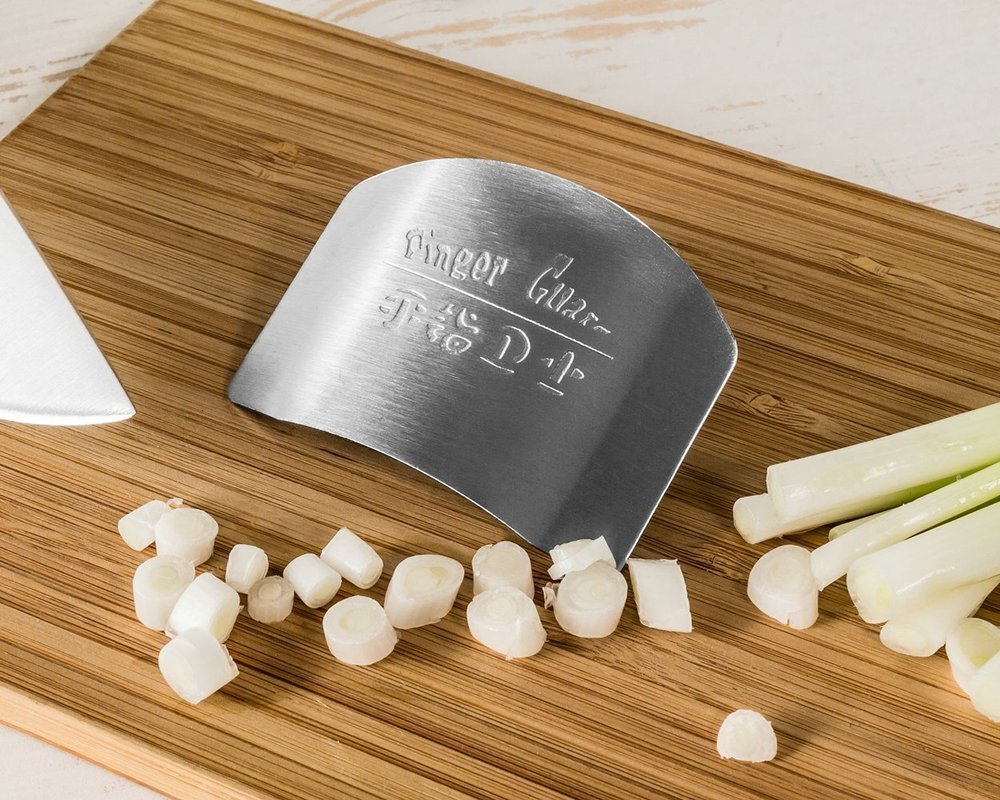 Ļoti noderīga un izstrādāta tā, lai jūs varētu ar pirkstiem turēt to, ko griežat vai kapāt, un tos visus apsargāt. Viens no ērtākajiem pieejamajiem pirkstu aizsargiem. Aizsargs atstāj pirkstus aizsargātus, bet brīvus, lai turētu pārtiku. Sadalīts gredzens aizsarga aizmugurē ļauj noteikt tā izmēru uz vidējā pirksta. Vairogs nesabojās nažus – un to var mazgāt trauku mazgājamā mašīnā! Funkcijas: - pirkstu aizsargs, lai aizsargātu jūsu pirkstu un padarītu drošu griešanu un smalcināšanu - ļoti noderīgs un parocīgs lietošanā - Drošs trauku mazgājamajā mašīnā