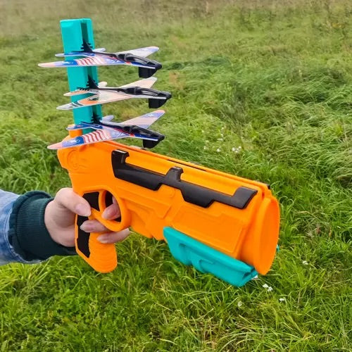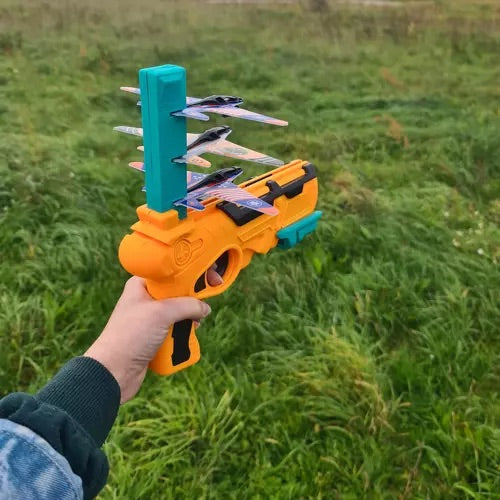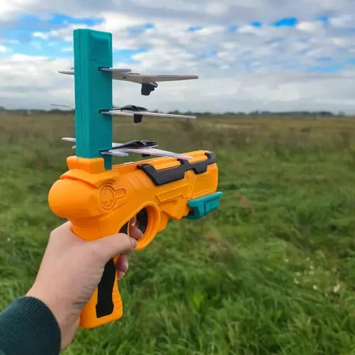 palaistu citu lidmašīnu, nospiediet melno pogu, lai atkārtoti ielādētu. Komplektā ietilpst palaišanas iekārta un trīs lidmašīnas.