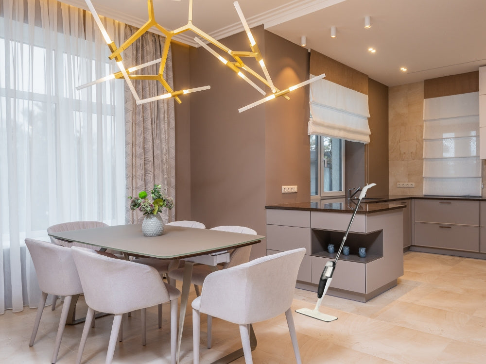 Plakanā mopa ar garu smidzinātāju 120 cm 350 ml + 3 mikrošķiedras filtru iepakojumi Plakanā mopa ar smidzinātāju 120 cm + 3 mikrošķiedras spilventiņi Mūsdienīgā plakanā mopa ar smidzinātāju ir uzticams risinājums ātrai un efektīvai grīdas tīrīšanai. Pateicoties integrētajai šķidruma tvertnei (350 ml) un ergonomiskajam smidzinātāja rokturim, jūs varat bez piepūles atbrīvoties no netīrumiem - bez spaiņa, neliecoties un nesamērcējot rokas! Efektīva tīrīšana bez piepūles Platā, rotējošā galva viegli sasniedz grūti sasniedzamas vietas, savukārt mikrošķiedras spilventiņi ir ideāli piemēroti putekļu, netīrumu un liekā mitruma savākšanai. Mops ir piemērots visu veidu grīdām: laminātam, flīzēm, linolejam vai kokam. Komforts un ekonomija vienā Smidzinātāja uzgalis ļauj vienmērīgi sadalīt ūdeni vai mazgāšanas līdzekli, ievērojami samazinot tīrīšanas laiku un tīrīšanas līdzekļu patēriņu. Garais rokturis (120 cm) nodrošina komfortu pat uz lielām virsmām. Tehniskās specifikācijas: - viegls un parocīgs - mazs ātrums - ekonomisks - neatskrūvējams kāts - ērts lietošanā - ūdens tvertnes tilpums: - piemērots visām virsmām - ērta smidzināšanas poga - liela tīrīšanas virsma - ergonomisks rokturis ar līplenti - piestiprināmi paliktņi - mazgāšanas paliktņa izmēri: - mopa augstums ar kātu: komplektā ietilpst: - saliekams mops ar smidzinātāju
